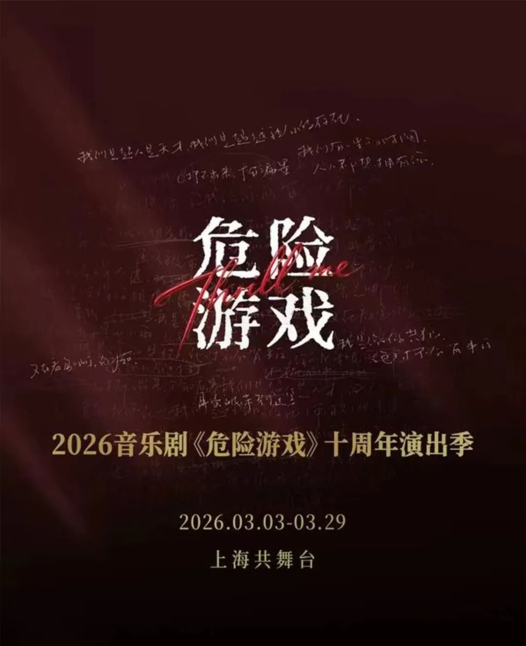 音乐剧《危险游戏》中文版十周年演出季将于3月3日至3月29日在上海共舞台重磅上演,此次演出不仅是该剧中文版的十周年纪念,更将带来全新主题视觉与升级卡司阵容,为观众呈现一场悬疑与情感交织的高能舞台盛宴。