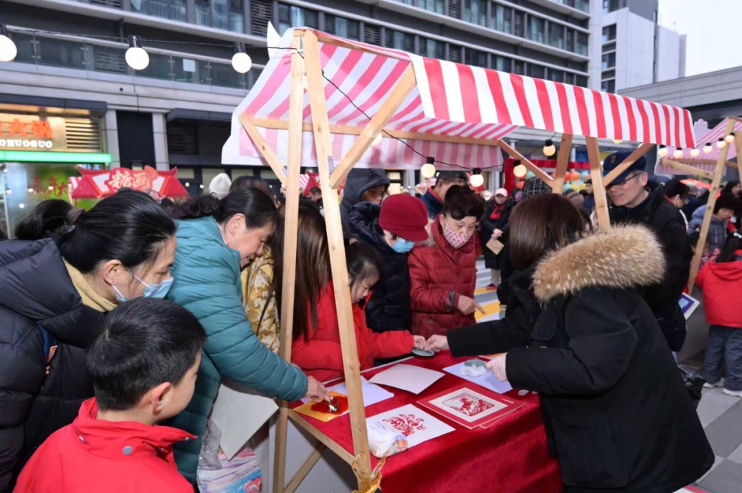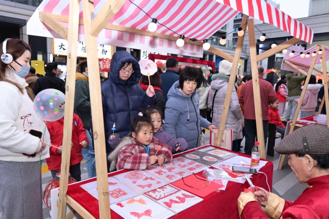 从栩栩如生的面人造型到精致绚丽的漆扇作品,从寓意吉祥的龙凤字到惟妙惟肖的剪纸,社区居民一边欣赏手艺人现场展示绝活,一边沉浸式体验传统技艺的精妙和蕴藏其间的文化意蕴。