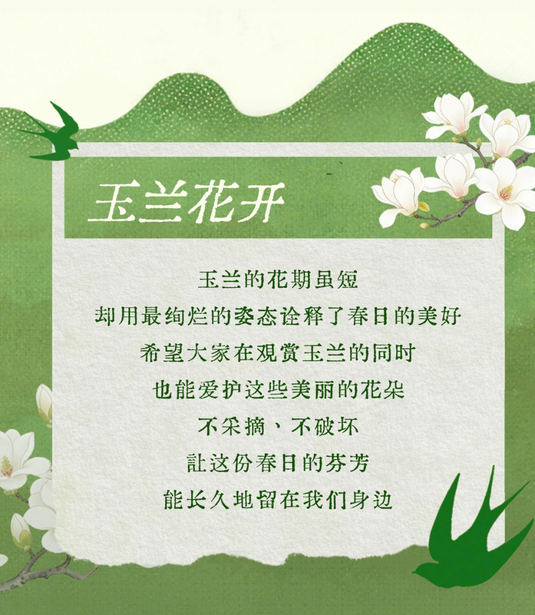 在市级管理部门的指导和部署下,普陀区积极落实上海市花白玉兰推广应用三年行动计划(2024-2026年),有序推进白玉兰特色道路、白玉兰栽植及观赏点位等专项工作,截至2026年末,预计将新增180株玉兰,包括白玉兰、紫玉兰等品种。