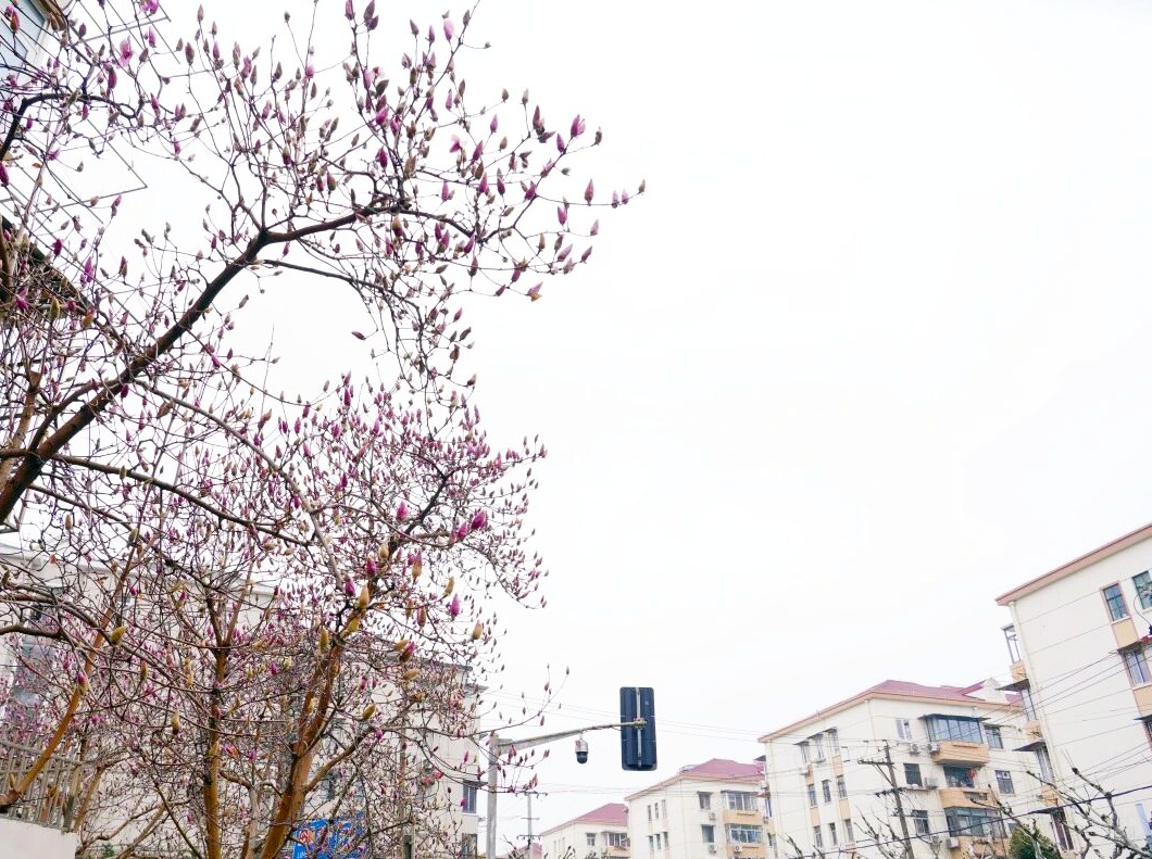 普陀区目前栽植约700株玉兰,包括白玉兰、望春玉兰、二乔玉兰等品种。目前在街头绿地中,富水路、祁连山南路、岚皋路、富平路等约8条道路路段、转角节点的各类玉兰或整齐排列,或三五成丛,已绽放出“明眸皓齿”般的花苞,预计于一周内将迎来最佳观赏期。