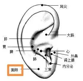 耳朵上还有一个神奇的面颊区。针对性地刺激这个区域,被认为有助于改善面部血液循环,对淡化黄褐斑、对抗痤疮、减缓皮肤衰老有一定辅助作用。
