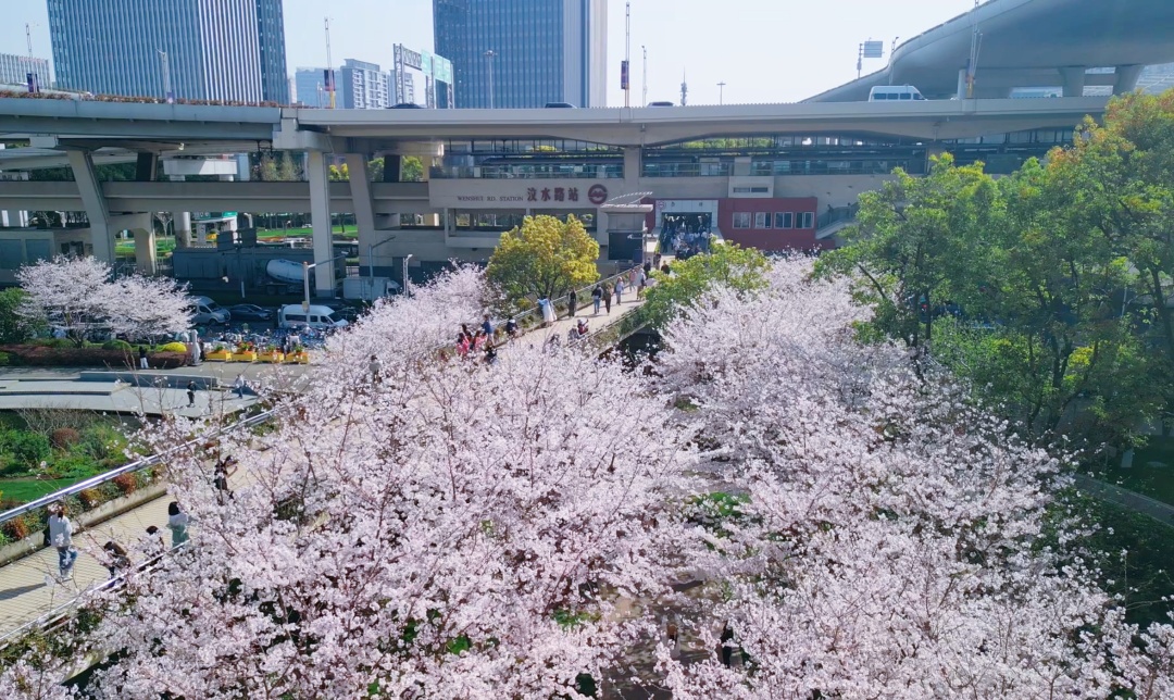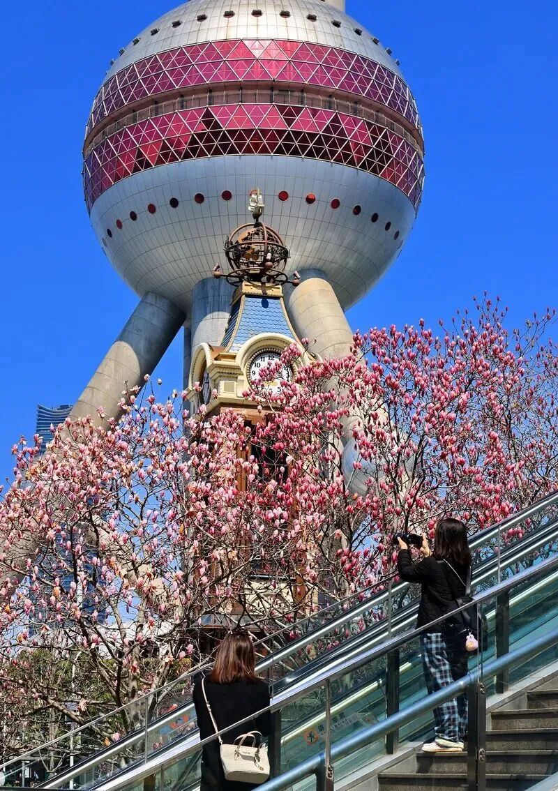 当春风漫过上海的街巷与轨道 最美的风景 已藏进你日日途经的地铁车站 粉白花瓣随风轻落 列车穿行于春色之间 一站一花卉,一步一温柔 小红书@Rionida 最近上海人的社交平台,被1号线彭浦新村站的早樱刷了屏。从3/4号口扶梯一出来,就被粉色樱花海撞了个满怀! 早樱沿通道两侧整齐排列,树枝交错,繁花似锦。这处藏在城市轨道交通旁的春日秘境,让通勤路都变成了赏樱之旅。 小红书@静小婧Jing 而在马路对面的公交车站候车的市民,也同样有眼福。高架桥的线条恰如其分地成为画框,将这一抹春色定格。连绵的粉色花海与穿梭的车流相映成趣,构成一幅动静相宜、独具韵味的都市春日长卷。 目前,彭浦新村站的樱花主要为早樱品种河津樱,它们如同春天的使者,率先绽放。经过春雨的滋润,浅粉色的花朵更显清新婉约,美得纤尘不染。 近日,静安中环公园的红梅悄然盛放,从轨道交通1号线汶水路站3号口出站,只需一眼俯瞰,便能看到一片绯红的云霞铺陈在街头。 娇艳的红梅缀满枝头,在乍暖还寒的风里轻轻摇曳,像繁星坠落,又像春天踮起脚尖,悄悄趴在城市的肩头。 有人停下赶着上班的脚步举起手机,对着层层叠叠的梅花按下快门,笑言这是“上班路上的小确幸”;还有人利用午休时间在花坛边的长椅休憩,享受若有若无的梅香。 待到三月底,公园北部的樱花也将接力上线,届时,染井吉野在桥下如云霞般绽放,在车水马龙的高架桥下装饰出一个梦幻世界。 等到三月中旬,虹口足球场附近的樱花在暖阳的召唤下,纷纷从沉睡中苏醒,热热闹闹地绽满枝头。 整个地铁站被粉色花海温柔环抱,满树繁花,似云霞般明艳动人,微风拂过,花瓣簌簌飘落,仿佛下起一场浪漫的花雨,将春日的氛围感拉满。 位于南浦大桥下的公交枢纽站点,有“最美公交车站”的美称,若是乘坐43路、65路、89路、109路等,一路与美丽的樱花相伴,简直是回家路上的小确幸。 到三月下旬,繁茂的樱树枝头,花朵簇拥,如粉云般轻柔烂漫。花瓣层层叠叠,粉白相间,引得路过的行人纷纷驻足欣赏、拍照留念。 三月中旬,各色玉兰在东方明珠下怒放,无论是站在陆家嘴天桥上俯瞰,还是在地面抬头仰望,都能发现拍摄玉兰花的绝佳点位。 移步到陆家嘴中心绿地,樱花在此盛放,一幅自然与都市完美融合的画卷就此展开,还能和上海中心、上海环球金融中心、金茂大厦、迪士尼城堡同框。 三月下旬,位于地铁2号线浦东南路站4号口的“樱花林”,将编织出一片宁静空间。 成片樱花的枝丫如雪瀑般倾泻,在高楼大厦的环抱中,绿地、公园成为了都市人的精神绿洲。