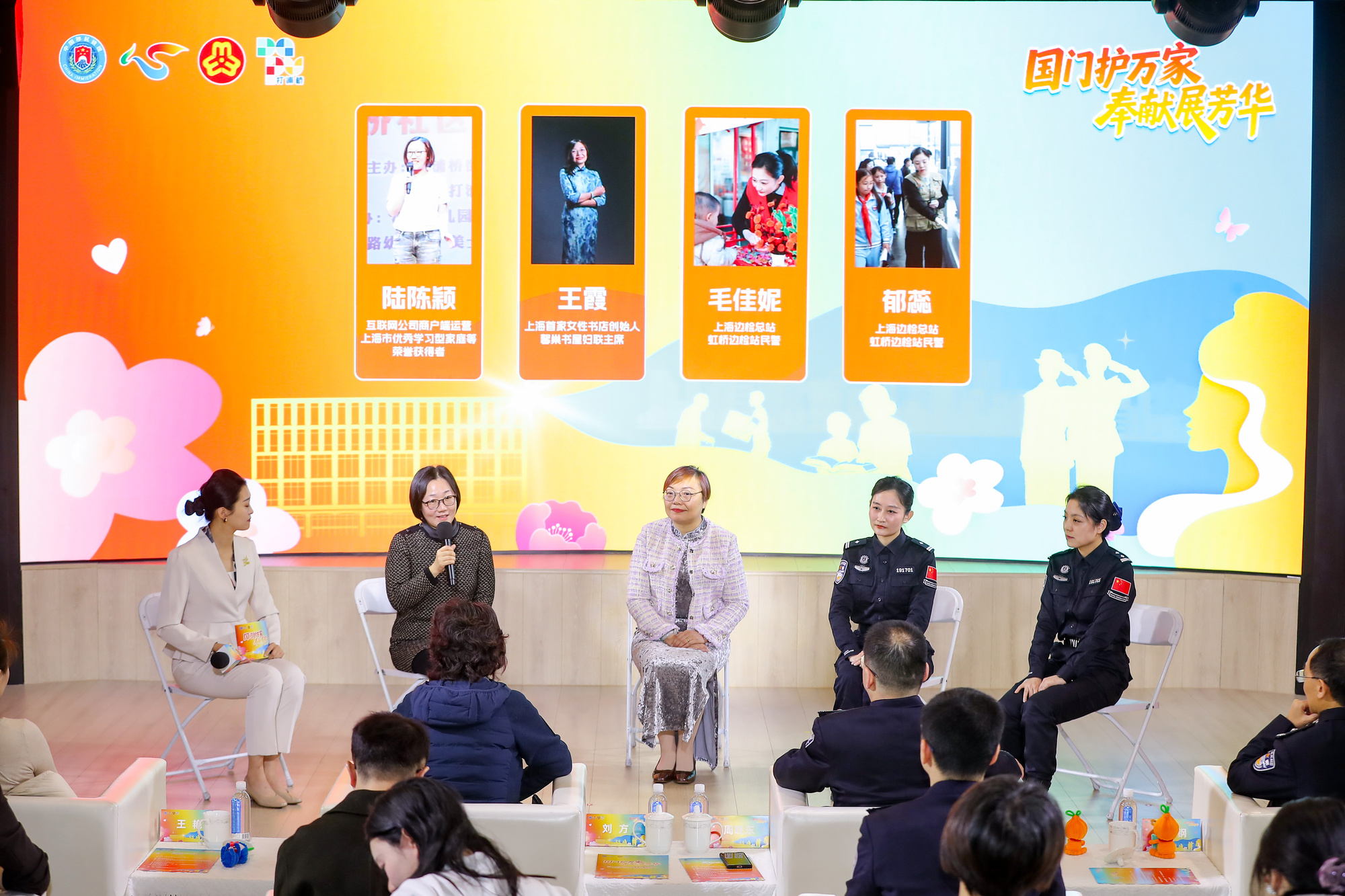 在妇女代表交流分享环节,四位嘉宾从不同视角诠释了新时代志愿服务与女性力量的融合。上海边检总站虹桥边检站民警郁蕊将中共一大纪念馆的红色志愿精神、国门守护职责与社区服务贯通,彰显“把别人放在心上”的志愿初心;上海边检总站虹桥边检站民警毛佳妮在儿童公益与社区服务中践行雷锋精神,展现巾帼志愿者的细腻与担当;互联网公司商户端运营、上海市优秀学习型家庭等荣誉获得者陆陈颖依托妈妈互助团打造童萌社,以共学共育理念营造学习型家风,并善用社区资源推动共建;上海首家女性书店创始人、馨巢书屋妇联主席王霞以女性书店为阵地,通过阅读与文化活动凝聚巾帼力量、推动家庭文明建设。