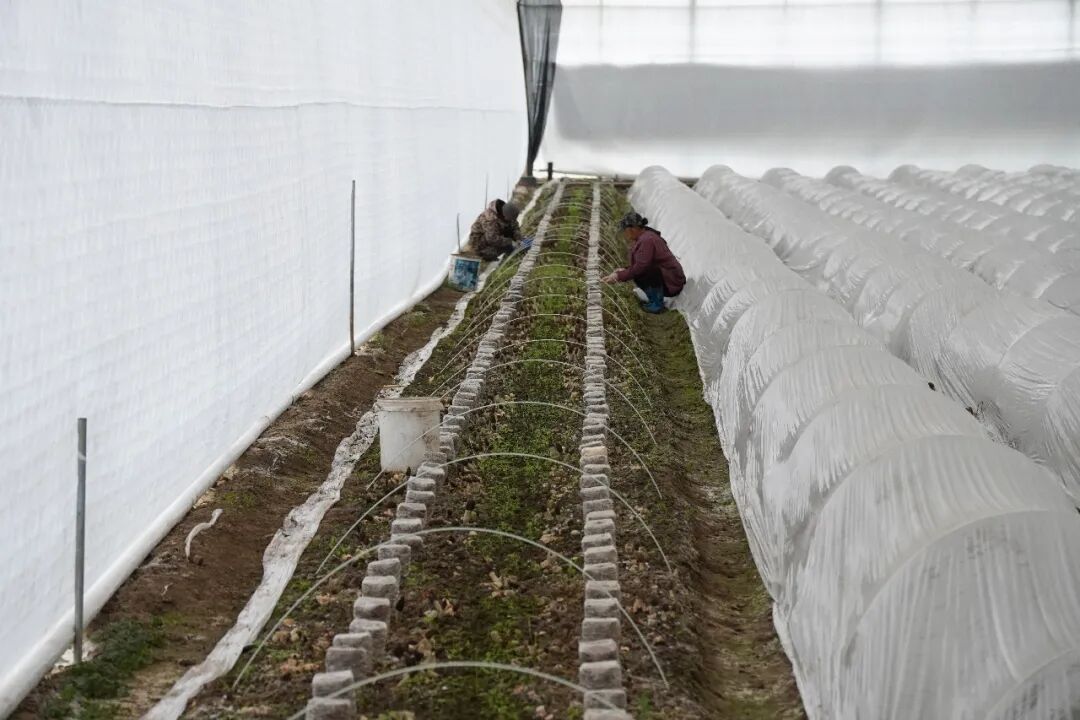 3月3日,记者来到位于徐行镇钱桥村的上海承鑫水产养殖专业合作社(苏北人家)。走进联动大棚,一股温暖湿润的空气扑面而来。大棚内覆盖着一层小拱棚,用于保温保湿,拱棚膜上挂满了细密的水珠。