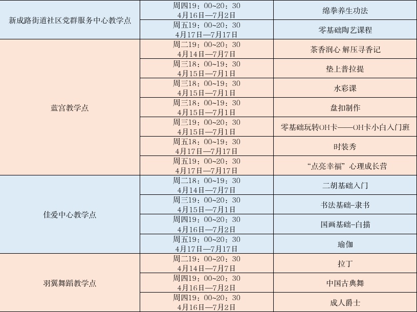 新成路街道2026春季市民夜校课程上新啦!还有市民日校全新开启,只为让艺术真正走进你的日常。乐器、绘画、陶艺、非遗绵拳、舞蹈......海量课程等你选~