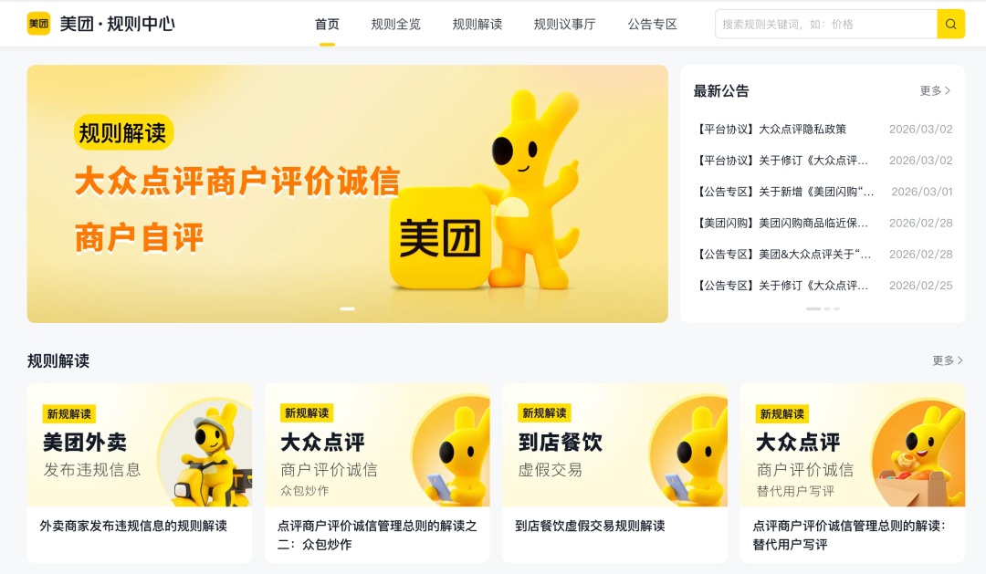 这一效应的核心在于,让曾经接受普法服务的群体,逐步转化为普法内容的生产者和传播者。以美团平台为例,在其“规则中心”页面,除了发布平台自身的管理规范外,还同步推送市场监管相关法律法规的解读内容,帮助商户和消费者更好地理解法律边界,提升法治意识。这种模式不仅提升了普法覆盖面,也增强了平台自治能力。