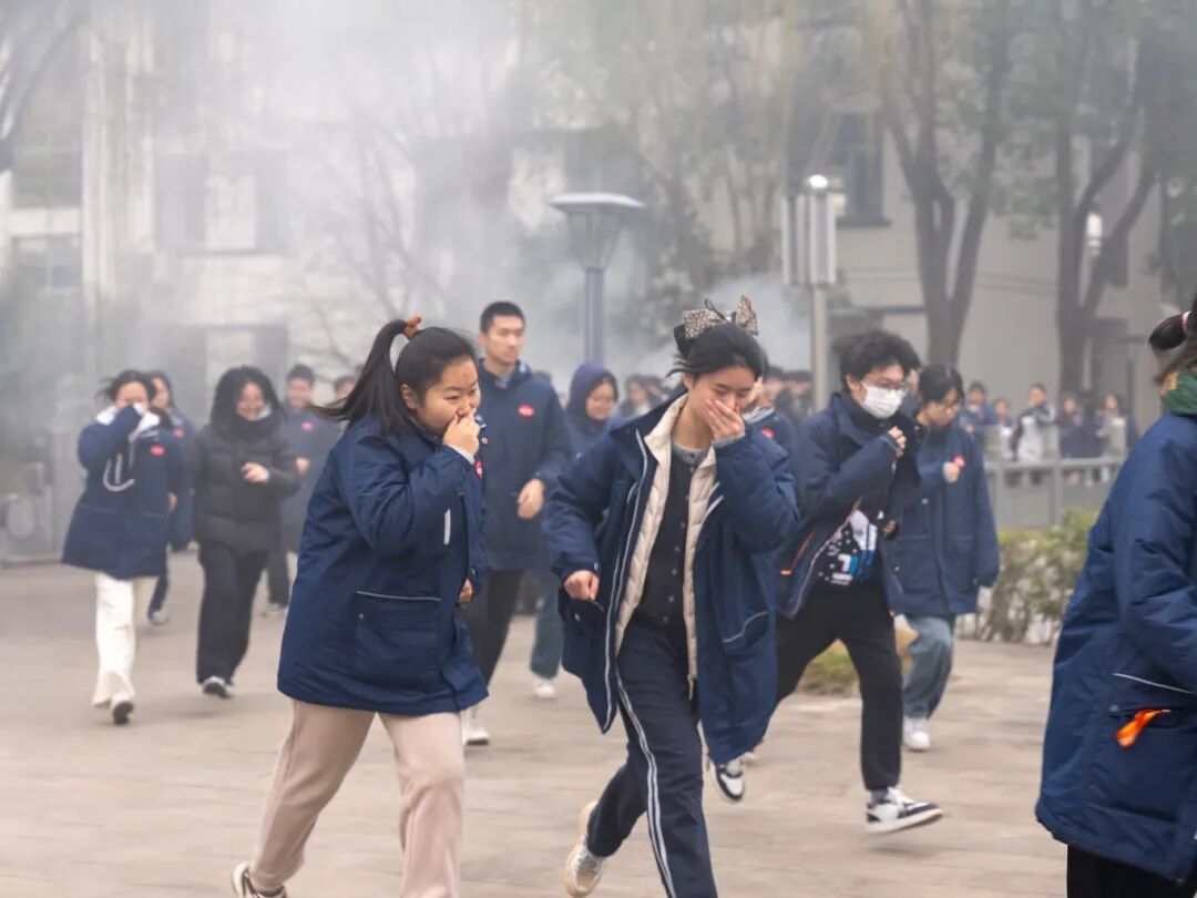 随着一阵急促的警报声响起,模拟烟雾在教学楼楼道内迅速弥漫,正在上课的学生们在班主任和消防指战员的引导下,迅速反应,弯腰低姿、捂住口鼻,按照预定疏散路线快速、有序、安全地撤离至操场指定区域。演练结束后,消防宣传人员结合校园火灾特点,为师生现场讲解火灾预防、灭火器使用、火场逃生等知识。