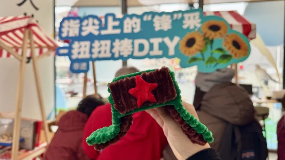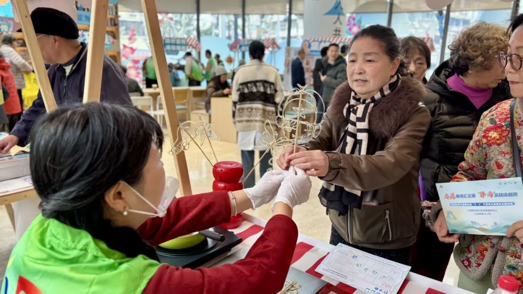 一楼江心暖心会客厅的手作区域,成为现场“人气打卡点”,非遗魅力与雷锋精神碰撞出别样火花,居民们在动手创作中感受雷锋精神的鲜活与温暖。巧手画“锋”糖摊位前,非遗糖画老师手执糖勺,以糖为墨、以板为纸,手腕翻转间,雷锋形象、螺丝钉、五角星等正能量符号跃然眼前,甜美的糖画不仅是舌尖的滋味,更是精神的传递;巧手塑“锋”范摊位上,专业老师展现实力非遗剪纸技艺,红纸翻飞,一幅幅精美灵动的雷锋主题剪纸作品新鲜出炉,引得居民连连称赞;指尖上的“锋”采摊位里,彩色扭扭棒在老师和居民的手中翻转、缠绕,一个个立体生动的雷锋形象逐渐成型;江浦学雷锋微故事馆的雷锋精神宣讲同步开展,让红色故事浸润心田。