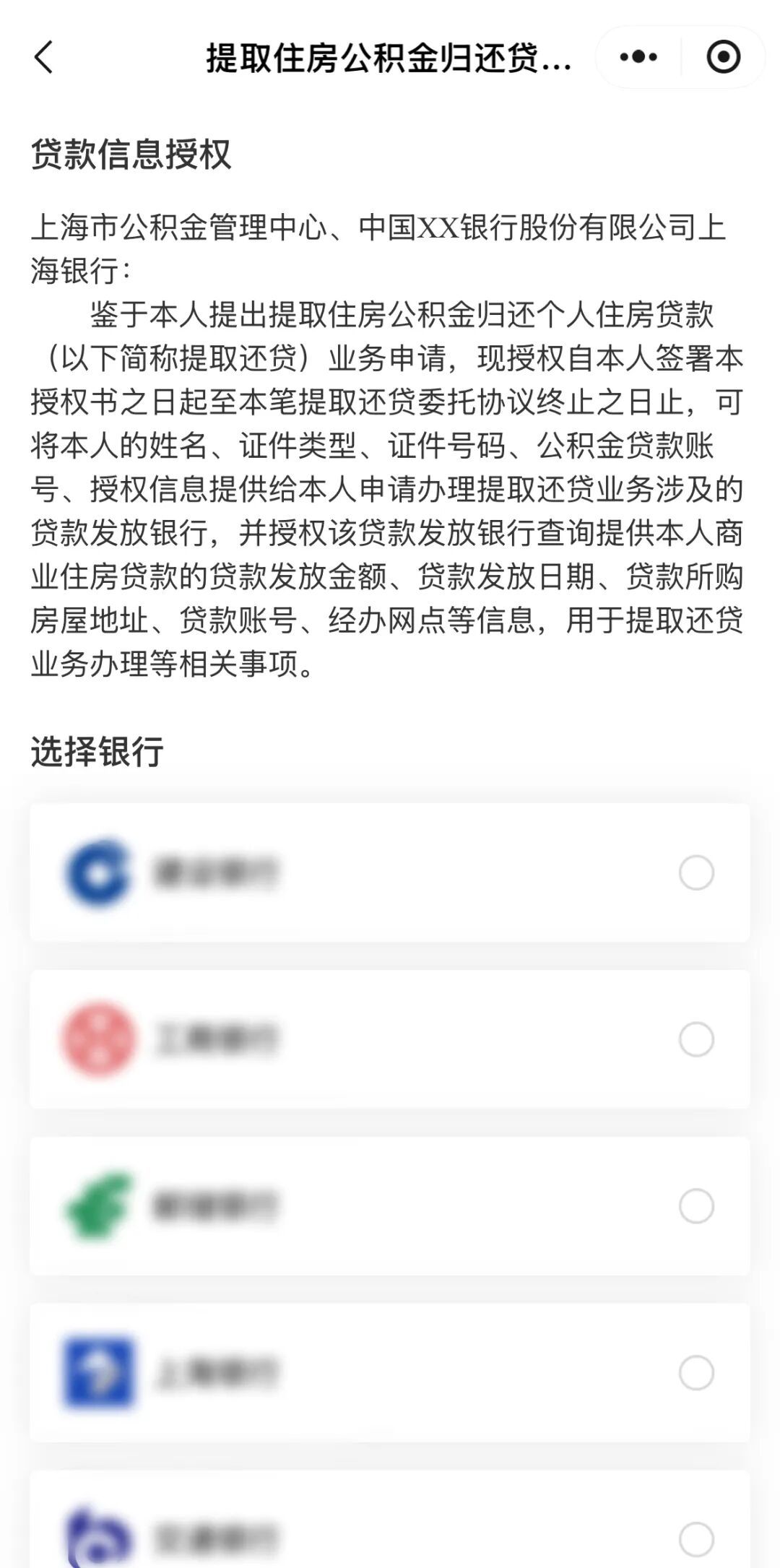 第三步:先选择贷款银行,勾选并同意授权贷款信息后,在贷款信息查询列表页中选择需要办理提取还贷的贷款,进入“下一步”。