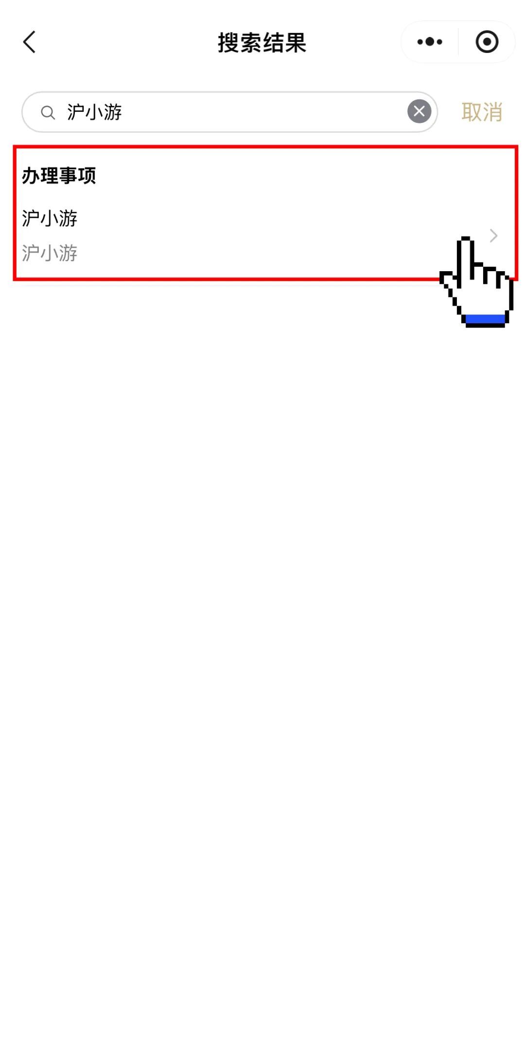 打开“随申办市民云”(微信小程序/支付宝小程序),首页搜索栏输入“沪小游”并点击进入。