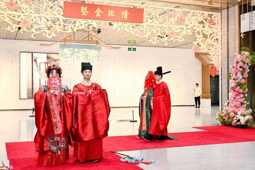 上海图书馆以精心复原的传统婚仪体验,让观众们感受到了唐风宋韵华服巡礼的顶级浪漫,也感受到了这份穿越岁月、情比金坚的文化传承,古籍里的爱情跃然眼前,也让千年前的“金石之盟”活在今日。