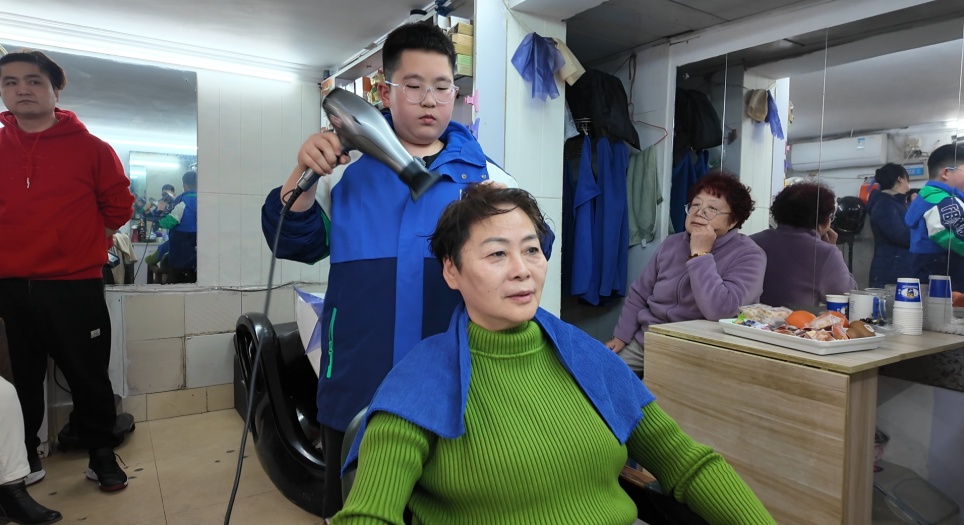 “刚开始一直跟着爸爸,坐在边上打打下手,帮忙洗头、拿个毛巾,心里还是有点痒痒的,特别想自己动手剪。”赵恒宇说。