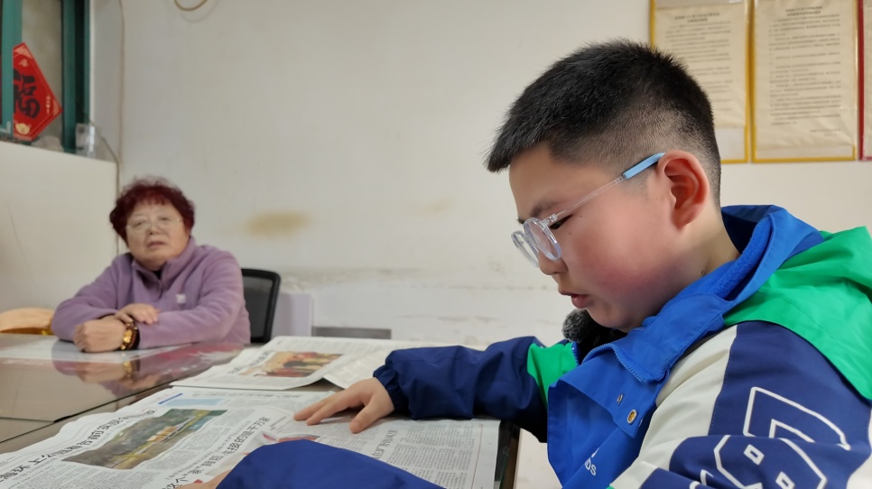 除了下棋,读报、聊天也是赵恒宇和老人们固定的温馨日常。社区里不少老人视力不佳、行动不便,赵恒宇就主动当起“小小读报员”,用清脆的声音,为老人们讲述身边事、天下事。在老人们心中,这个懂事的孩子带来的不仅是信息,更是一份实实在在的陪伴与牵挂。