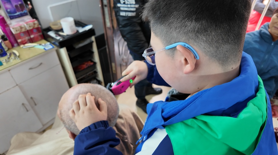 赵恒宇腼腆又认真:“每个月8号社区便民服务日,我都会和爸爸一起免费为大家剪头发。我现在最拿手的是圆寸,其他发型还要再努力。”