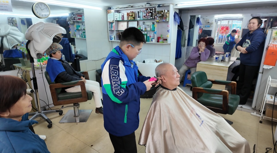 “第一次是给张爷爷剪头发,手抖得厉害,但从小看着我长大的爷爷奶奶们都说剪得好。我知道其实自己剃得并不是特别好,能感受到他们是特意鼓励我,心里很感动,也觉得很开心。”