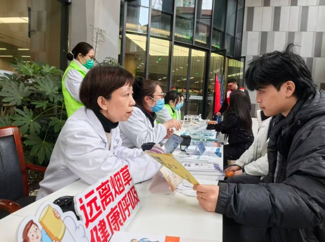 枫林街道红十字会携手上海建科商务服务有限公司党支部党员志愿者先锋队,在建科大厦举行“学雷锋践初心 控烟护健康 志愿暖人心”主题活动,利用职工午休时间,将控烟宣传与健康服务送进楼宇。活动现场设置了戒烟承诺签名、控烟知识竞答、中医诊疗体验等互动环节,并由街道社区卫生服务中心团队提供一站式健康咨询。在活动中,新开设的社区戒烟门诊首次亮相,由专业团队提供评估、药物干预及心理支持,为有戒烟需求的职工现场开展一对一指导,纠正“干戒”误区。活动以寓教于乐的方式普及健康知识,推动控烟理念深入人心。
