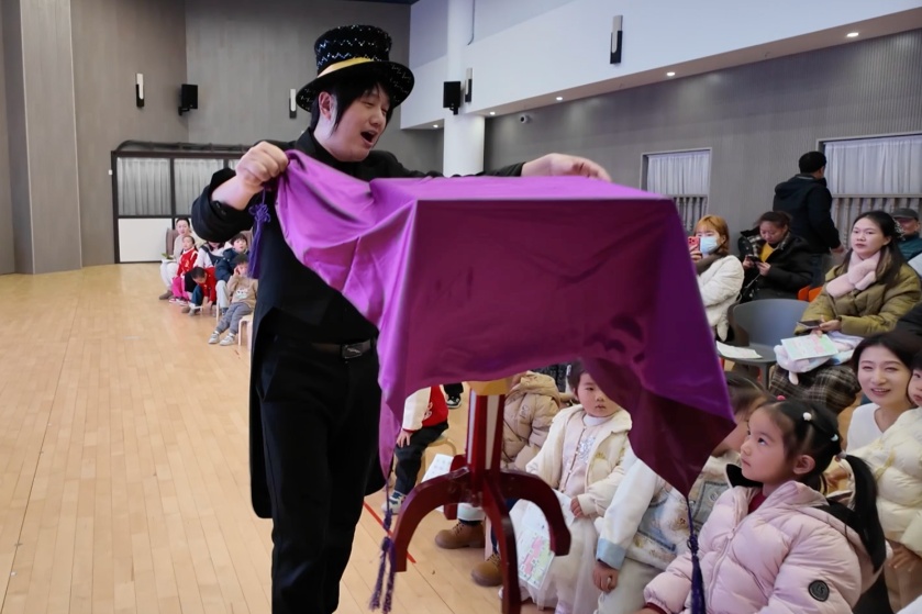 机器人为孩子们带来科技的震撼,魔术师的登场则将孩子们带入奇幻世界。钞票变魔术、桌子悬浮、魔法书里变出小鸟……一连串神奇表演,让小朋友们瞪大双眼,直呼“太神奇了”。