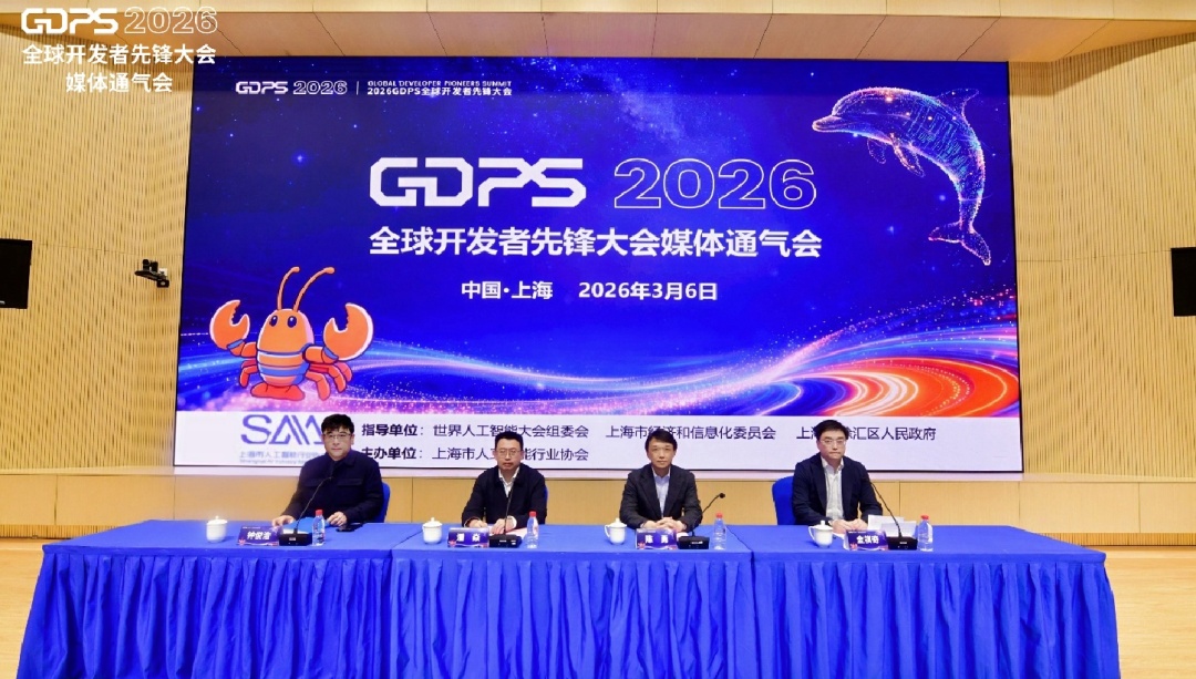 3月6日,2026全球开发者先锋大会媒体通气会在徐汇召开。市经济信息化委副主任潘焱,徐汇区副区长陈勇出席会议。