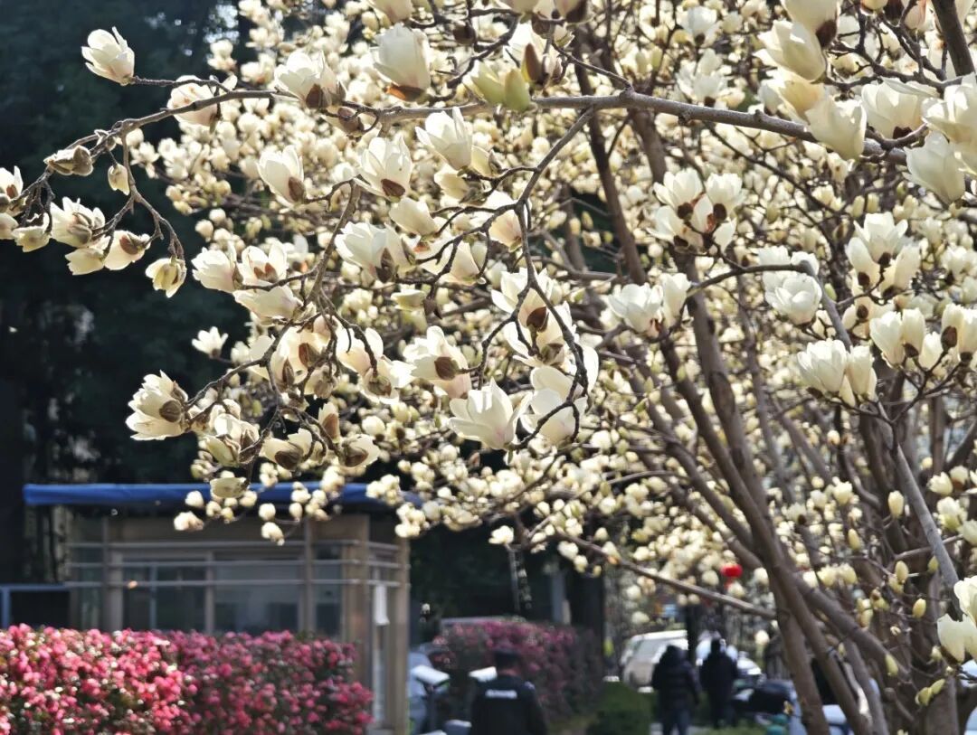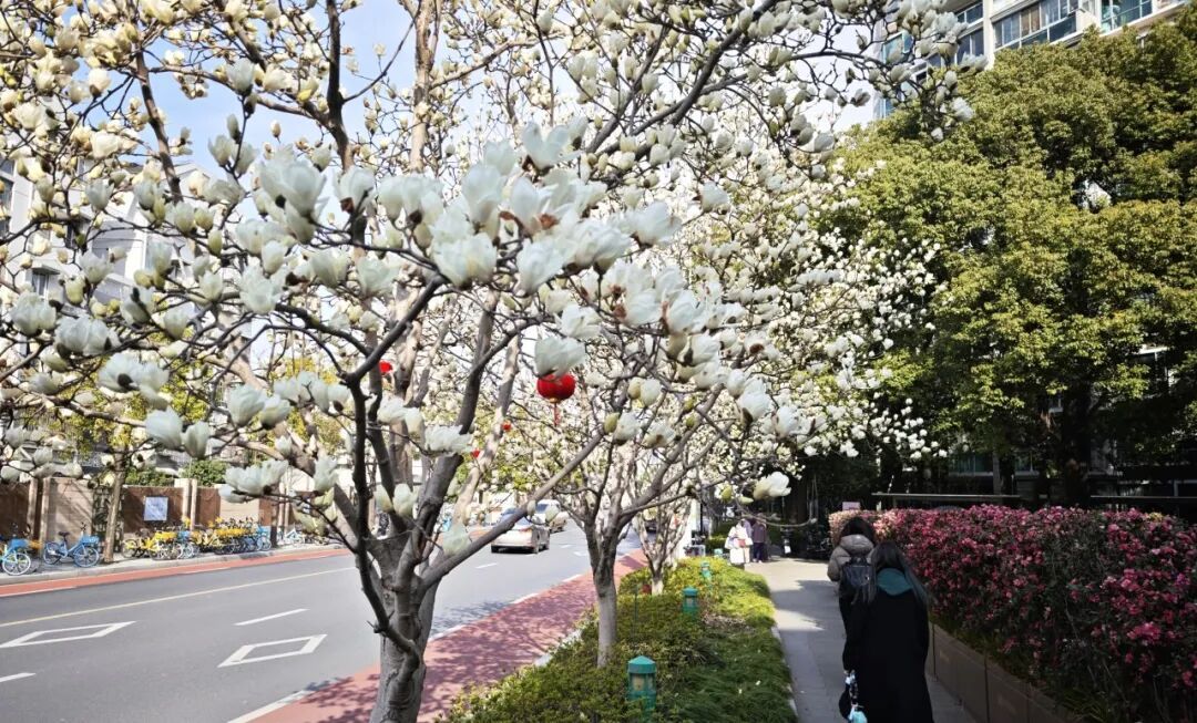 随着气温稳步回升,申城春意渐浓。在普陀区万里街道富平路上,白玉兰尽数绽放,洁白花簇缀满枝头,尽显春日独有的雅致与生机。 作为普陀区白玉兰种植最为密集的路段之一,富平路沿线成排栽种的近80株白玉兰,沿慢行步道蜿蜒延伸,道路线条柔和流畅,赏花视野开阔通透,每年3月初便进入盛花期,是普陀春日赏花“宝地”之一。 富平路 白玉兰具有“先花后叶”的生长特性,凑近细看,花苞初绽时花瓣微拢,形似温润白玉雕琢而成的玉杯;完全盛放后花瓣平展四方,花瓣质地厚实温润,带着淡淡半透明质感。晴天时,洁白花朵与湛蓝天空相映成趣,氛围感十足。 漫步花下,不少市民放慢脚步,或用手机定格美景,或悠闲散步感受春意。周边居民更是直言,家门口的美景让生活幸福感大幅提升。 家住附近的市民吴鑫说:“看着特别清爽舒服,满眼都是洁白的花,一下子就有春天的感觉了,心情都变好了。”市民岳衫衫也有同感:“这条街现在是我们万里街道的招牌美景,没事就想来走一走。” 白玉兰虽观赏性极佳,但生长养护较为精细,普陀区绿化养护部门提前谋划、精准施策,用科学管护保障年年繁花满枝。普陀区园开公司工作人员须磊介绍,今年暖冬气候助力,富平路白玉兰开花效果优于往年,花量更繁、花色更艳,整体观赏效果更佳。 须磊解释道,养护期间,工作人员会适时为土壤施加硫酸亚铁,一方面补充树木生长所需的铁元素,另一方面调节土壤酸碱度,将PH值控制在6至7的弱酸性区间,打造适配白玉兰生长的土壤环境,让植株长势更健壮,花开更繁茂。 今年富平路白玉兰整体花期较长,预计3月20日之前,市民都能前来观赏这片纯白盛景,邂逅普陀街头的浪漫春光。 记者:王笛 短视频制作:王笛、刘阳 编辑:吴锴 点击下方了解更多 普陀 你好 | 晴光育梦,稚影逐欢 九九消寒启新程,从一家银发商店,读懂普陀民生福祉的温度 【健康】家有哮喘娃,家长怎么帮孩子度过变天关 全国两会热词“提振消费”,普陀实践给出答案 “防”比“逃”重要!高层防火,务必改掉这些“小习惯”