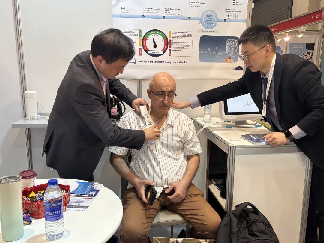 展会上,以心医疗重点展示的ReDS™ 心力衰竭全链条管理方案,以无创、快速、精准的肺水量化监测为核心,可在患者的诊断期、治疗期、易损期及管理期持续提供客观数据支持,提升急诊疾病筛查效率和住院期治疗精准度,强化出院后风险控制与长期随访管理,从而提升患者生活质量,有效降低再入院率。