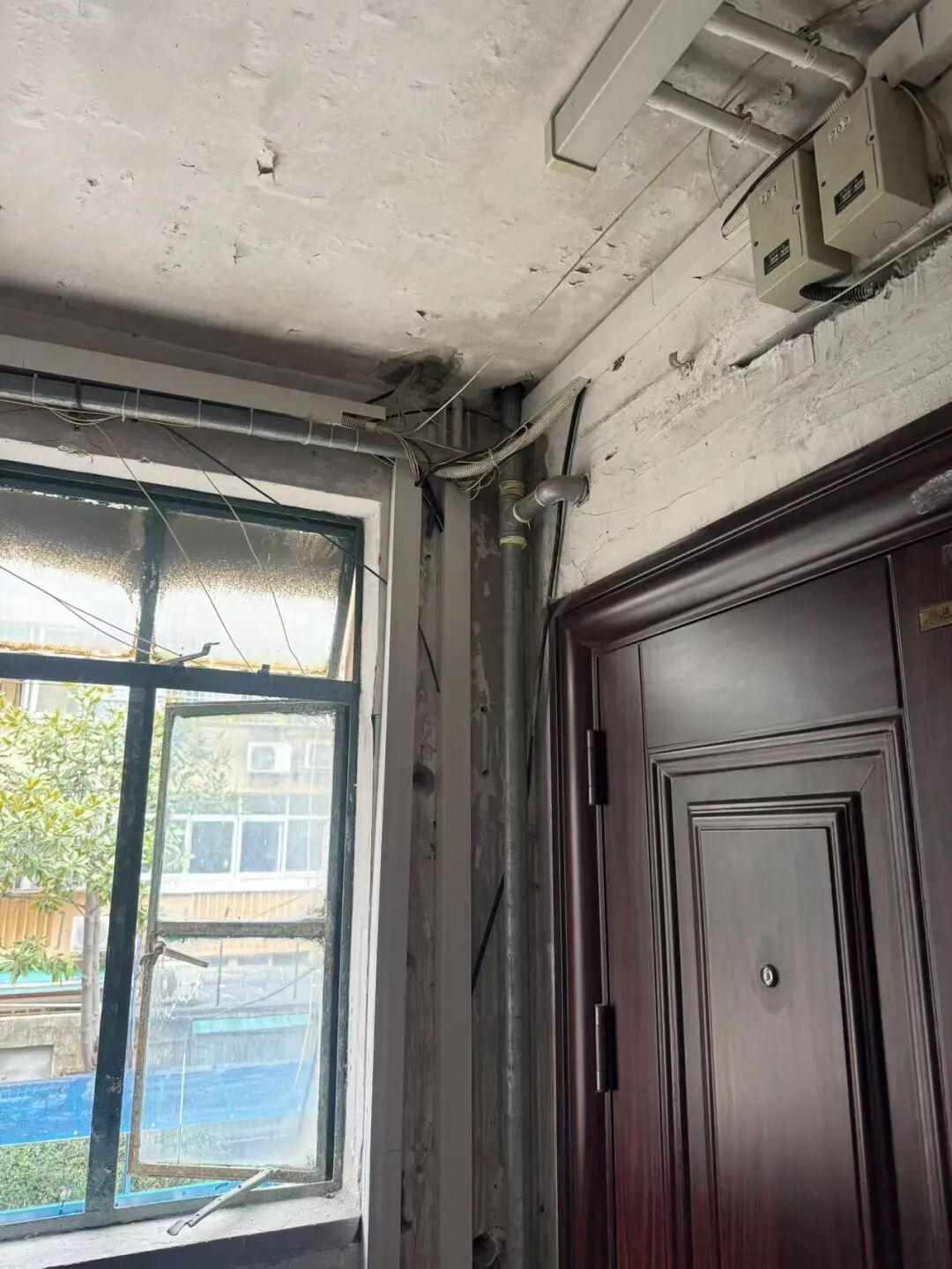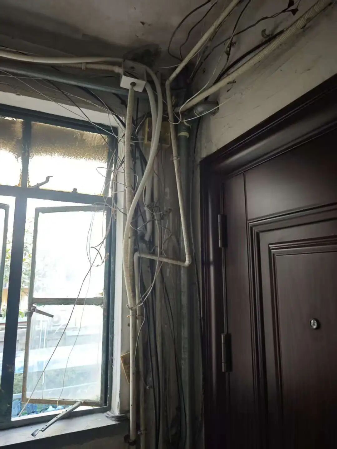 在包管过程中,老旧小区的“通病”施工单位一个没躲过:楼道里,电话线、网线、有线电视线,分属不同的运营商,交织在一起;施工空间逼仄,梯子都很难完全支开;加之春节前夕施工人员紧缺、作业时间紧张、需协调三大运营商等多重难题,给施工带来不小挑战。