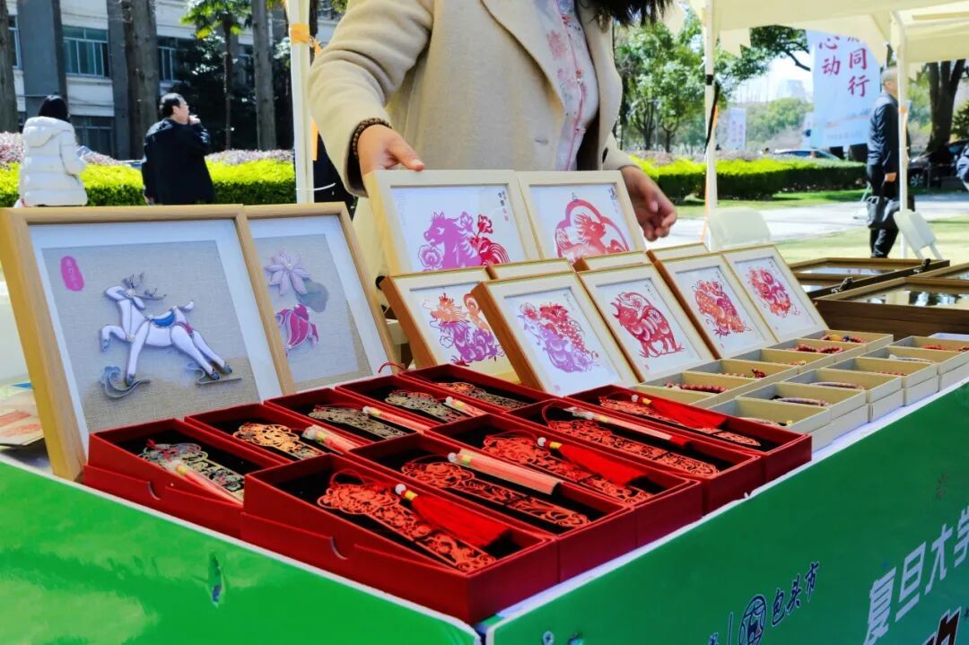 在西口后人文创摊位上,几枚精美的书签静静躺在桌上,像是来自天空的彩霞。这些书签不仅有着细腻的图案,还巧妙融合多种颜色,形成独特纹理。“我们在制作过程中加入了稀土,烧制过程会产生特殊的窑变,每一枚书签都是独一无二、不可复制的。”摊位负责人郭婷介绍。