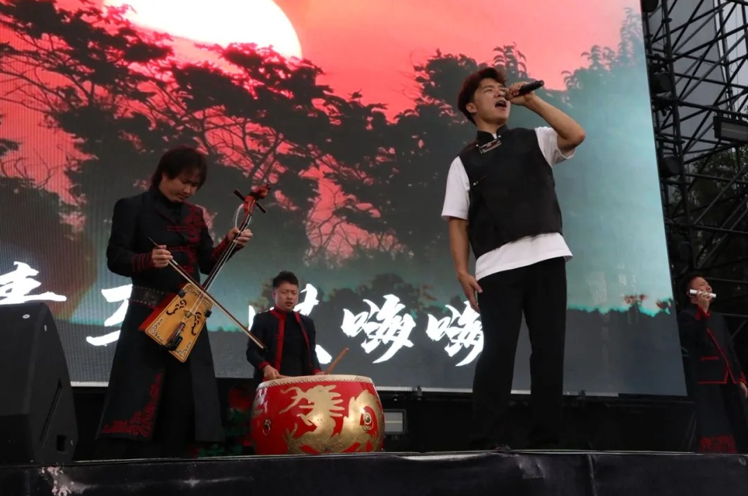 今天中午,光华楼东侧草坪,传来一阵阵悠扬的草原歌声。马头琴独奏《万马奔腾》,气势昂扬;一曲《敕勒川》深情绵长。来自包头的艺术家们走下舞台,牵起观众的手,一起歌唱、舞蹈。蓝色的哈达随着舞步飘动,蒙古袍在旋转中扬起裙摆。在雄浑的旋律里,师生们仿佛一同置身于千里之外的辽阔草原。