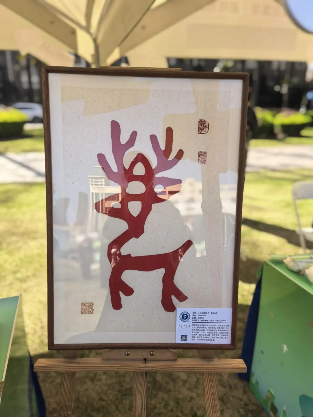 包头,蒙古语为“包克图”,意为“有鹿的地方”。包头市的地标性建筑就是“三鹿腾飞”雕塑。代代传承羊皮画艺术的计氏家族,特意设计了这幅名为《一鹿平安》的作品。“鹿代表着吉祥幸福。这幅画中的鹿头朝向三个方向,意味着包头市对大家的祝福。”计氏羊皮画摊位负责人介绍。