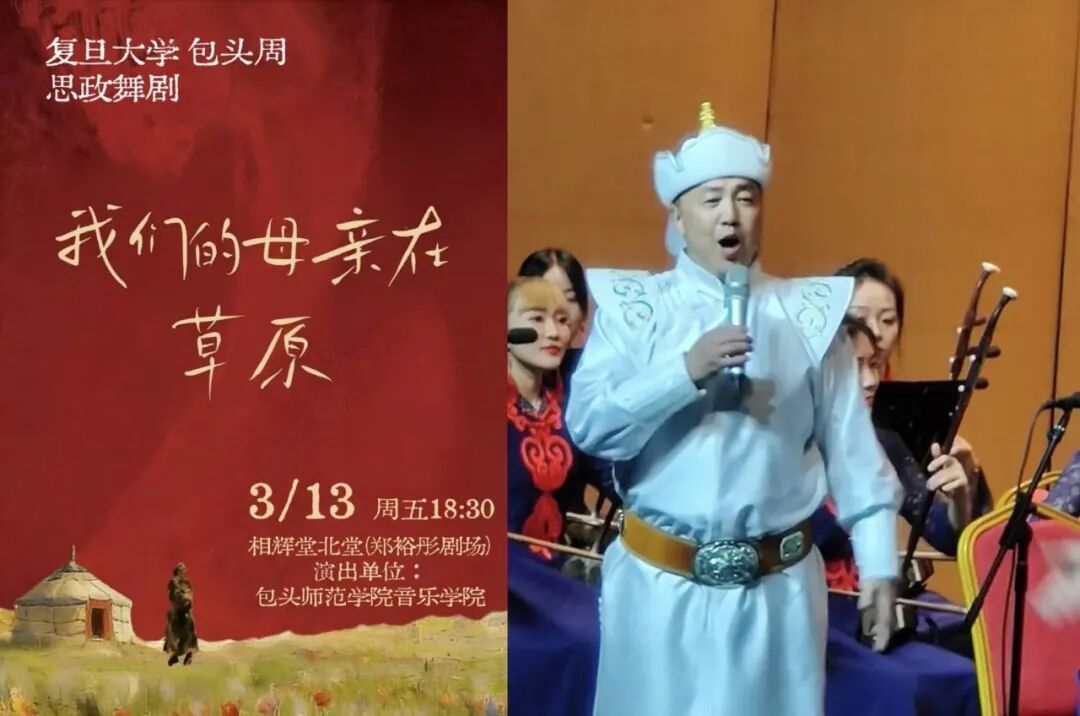 邯郸、枫林、张江三校区将轮番上演包头市艺术剧院和包头师范学院带来的精彩演出,马头琴的悠扬、呼麦的雄浑、诉说民族团结、守望相助的生命赞歌——包头师范学院原创舞剧《我们的母亲在草原》带你沉浸式感受草原独特魅力。