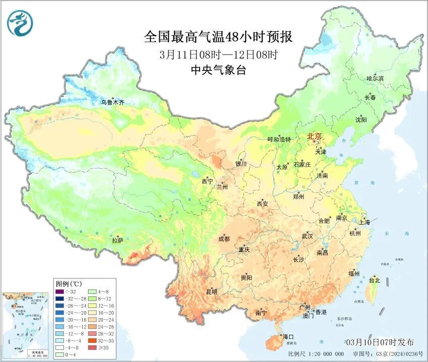 不过最低气温仍在10℃以下