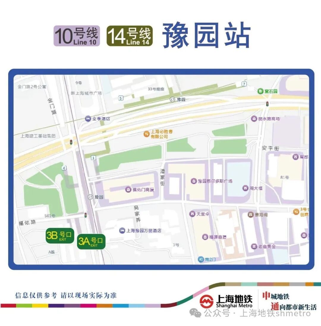 据申通地铁集团消息,地铁10、14号线豫园站3A号出入口因周边地块施工,已于近日封闭改造。乘客可通过其他出入口进出车站。
