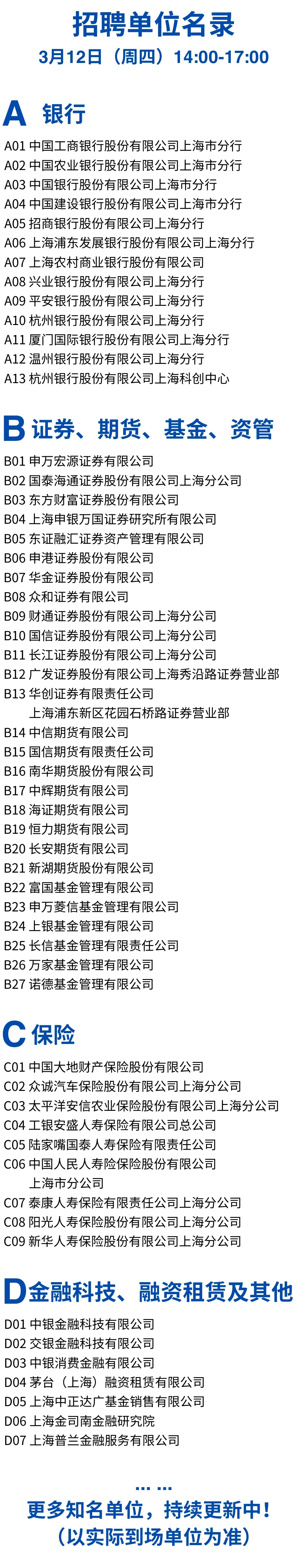 “金招荟”由中共上海市委金融委员会办公室、中共上海市金融工作委员会、上海市人力资源和社会保障局、上海市教育委员会指导,上海市金融稳定发展研究中心联合上海市人力资源公共服务中心、上海市学生事务中心主办,旨在汇集政府、金融机构、高校等力量,以“展金企风采,聚天下英才”为活动理念,搭建优质金融机构风采展示和金融人才供需精准对接的公益性平台,积极集聚优秀应届大学毕业生投身上海国际金融中心建设,助推青年学子成才,助力上海金融发展,共创中国金融美好未来。