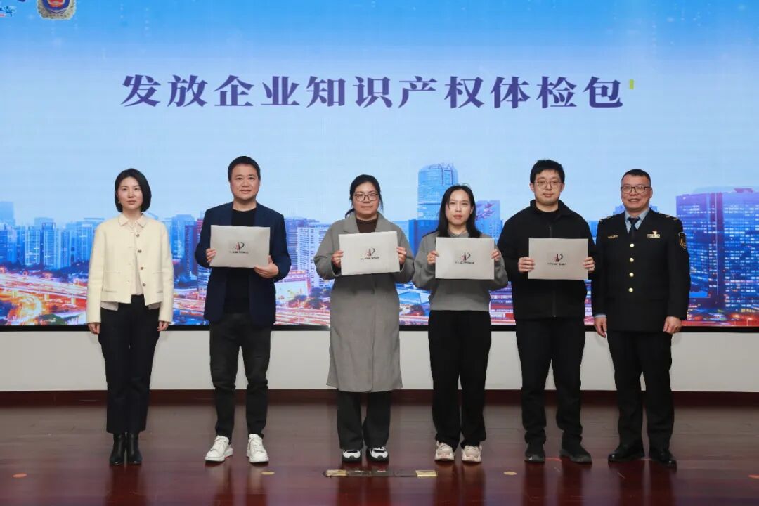 活动中,黑湖科技等4家企业代表领取知识产权体检包。体检包包含专业知识产权体检报告、知识产权政策工具书和联络卡,实现从“企业找服务”到“服务找企业”的转变。