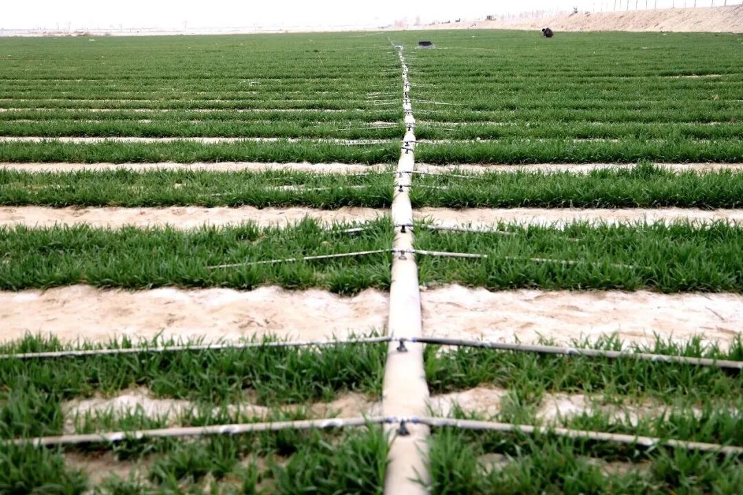 在广安镇团结村种植户崔林的麦田里,麦苗绿意盎然,处处透着蓬勃生机。田间铺满滴灌带,涓涓细流正无声滋养着这片土地。
