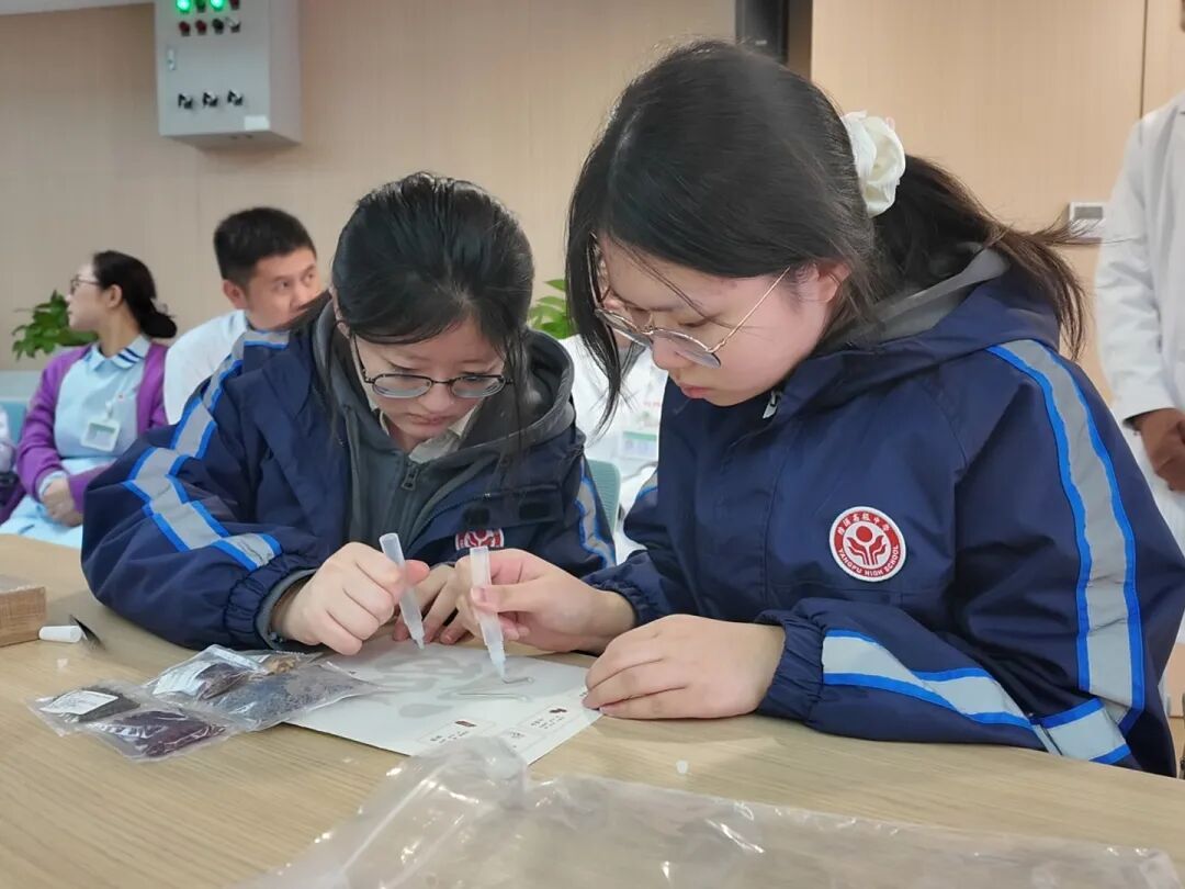 学生志愿者们还两人一组,分工合作,巧用桂枝、薰衣草、决明子、玫瑰花、红豆等天然中药材兴致勃勃地进行创作。大家细心挑选药材,根据药材形状慢慢搭配,小心翼翼地拼贴、点缀,把淡淡的本草香和满满的“福”气,都融进了每一幅作品里。为了增进学生们对所用药材的了解,护理院的中医医生还围绕其功效及日常应用进行了讲解。生动的健康科普,让学生们在动手实践中感受传统中医的独特魅力。