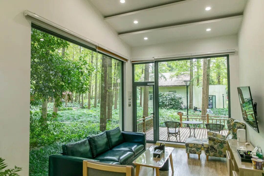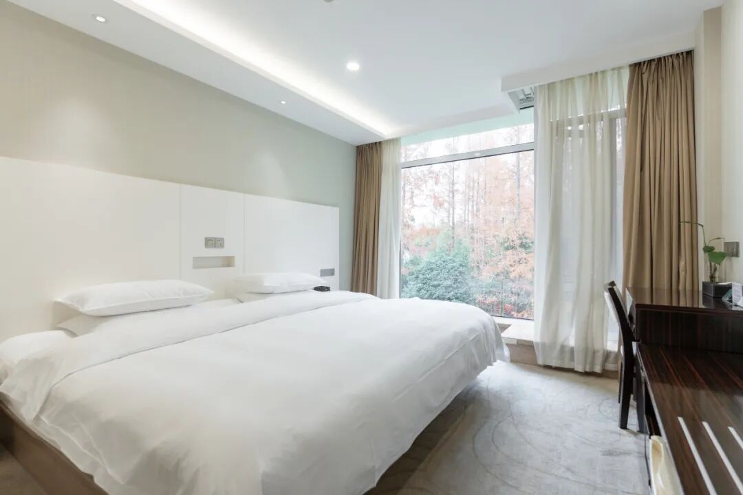 客房坐落林区,推窗即见水杉林海。在天然氧吧中醒来,让呼吸充满森林气息。