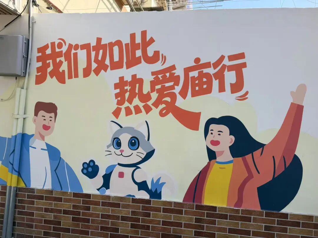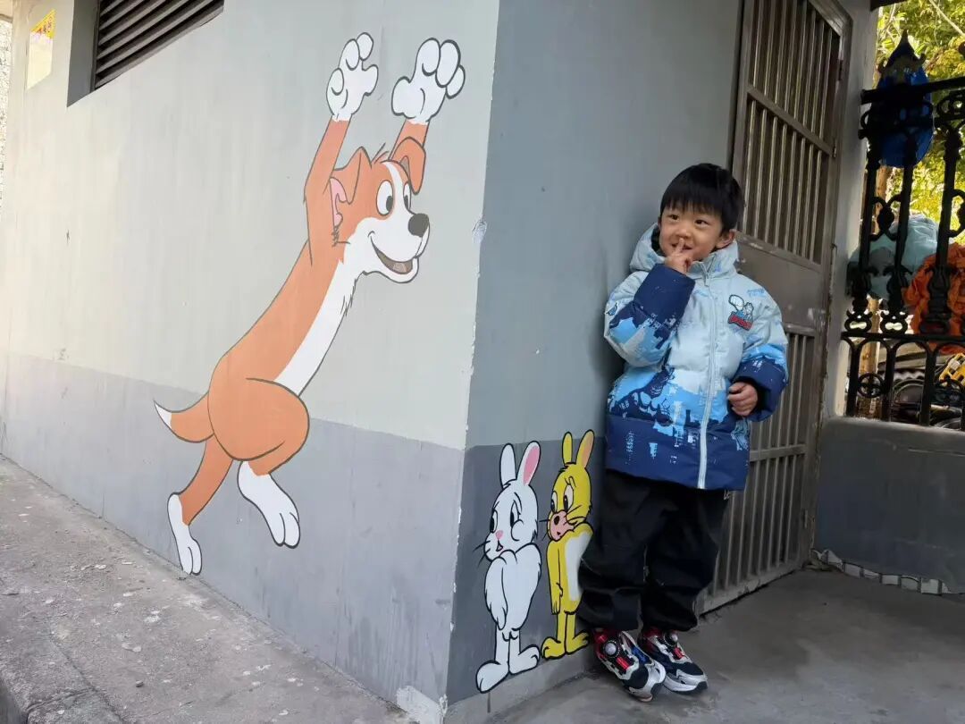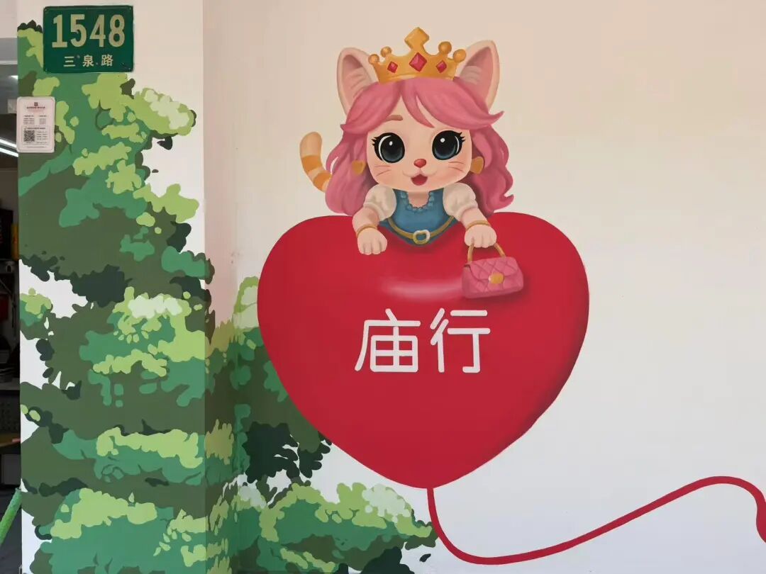 惊喜远不止于此。设计团队充分利用街区的地理特征,创造出人与画的趣味互动。一个公交车站旁,彩绘师利用转角视觉差,打造出“猫捉老鼠”的生动游戏场景,让候车的乘客在转身间收获一份意外之喜。