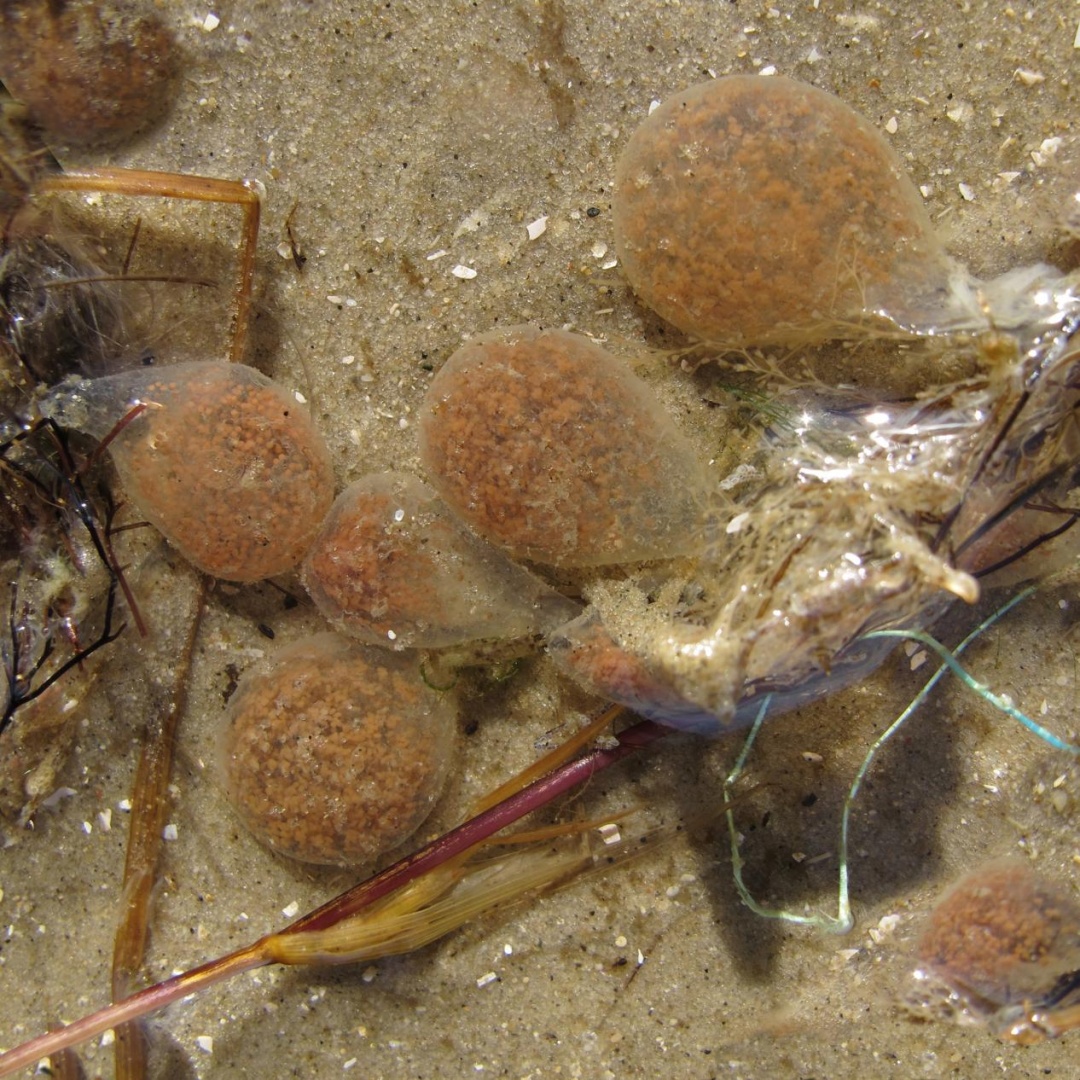 对于那些生活在沙滩上的动物而言,广阔的沙地上无依无靠,产个卵很容易就被天敌吃掉、被水冲走、被沙子埋掉,在这样的情况下,把卵积少成多造个卵囊/卵鞘出来就是个好法子。
