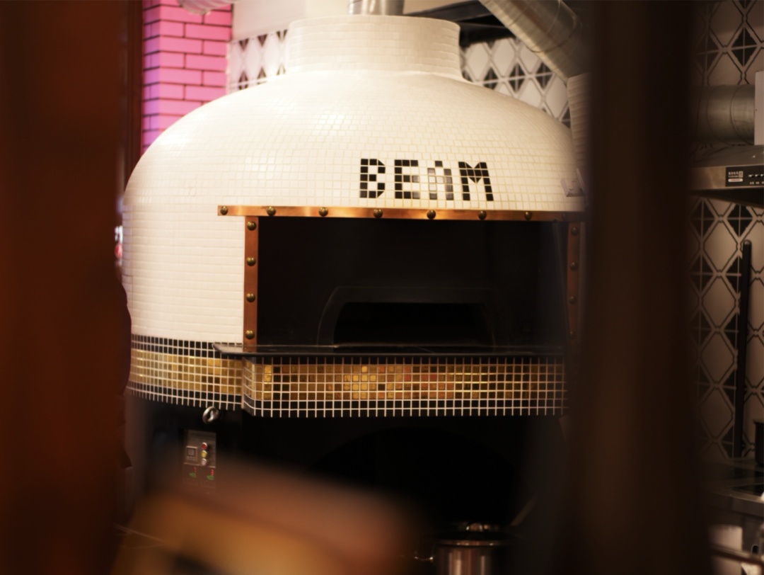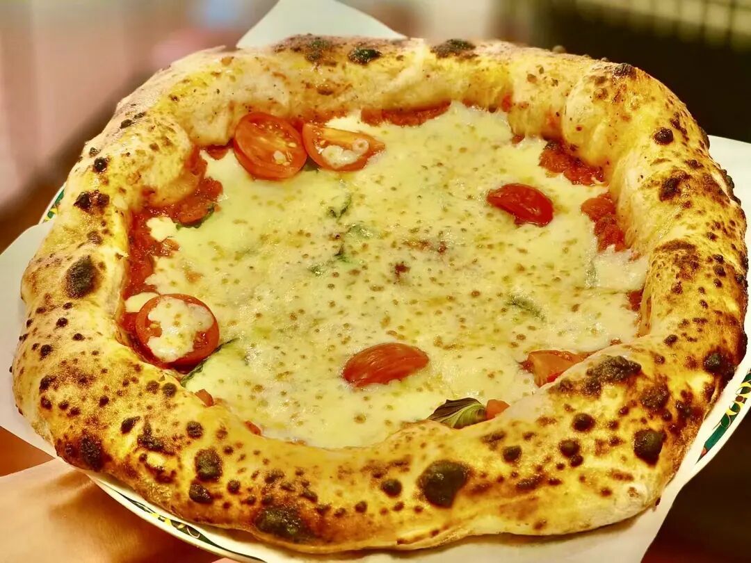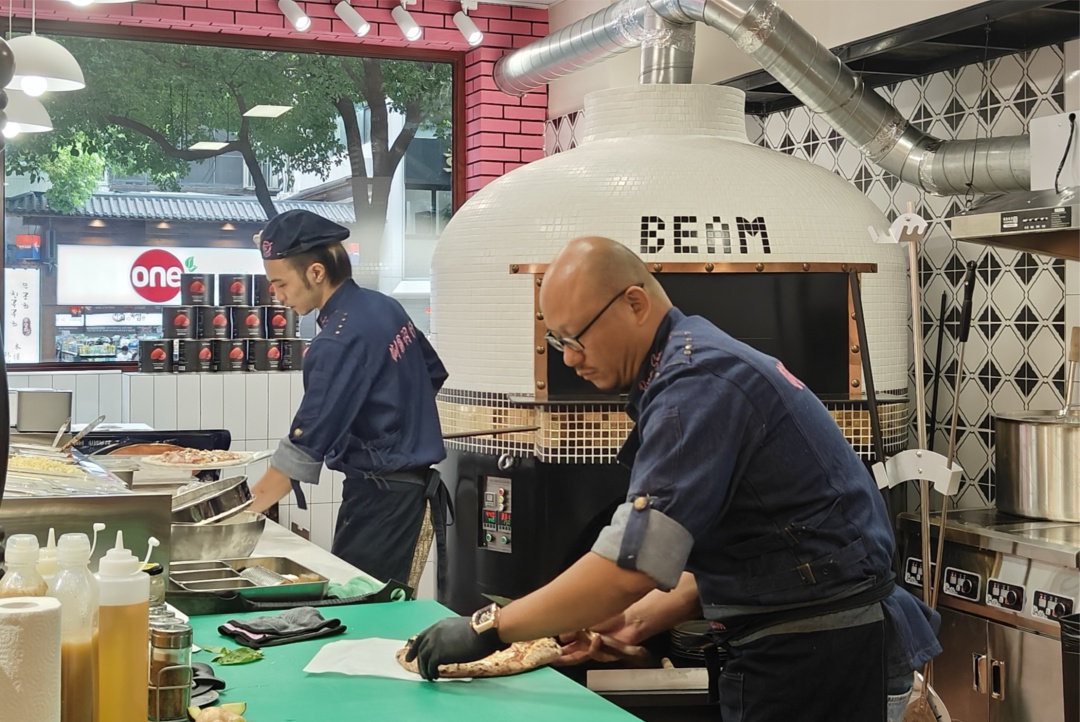 仅30平方米的厨房,意式窑炉就占去三分之一,面团在Beam手中旋转、抛起,被披萨铲利落送入500℃的炉膛。不过几十秒,松软滚烫的披萨出炉。饼边被烤出焦斑,一口下去,麦香与奶酪香气在空中散开,是那不勒斯披萨特有的风味。