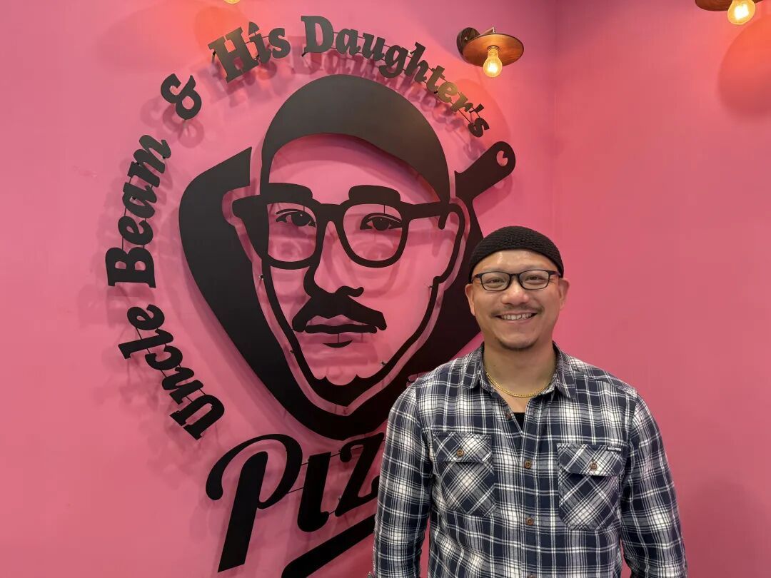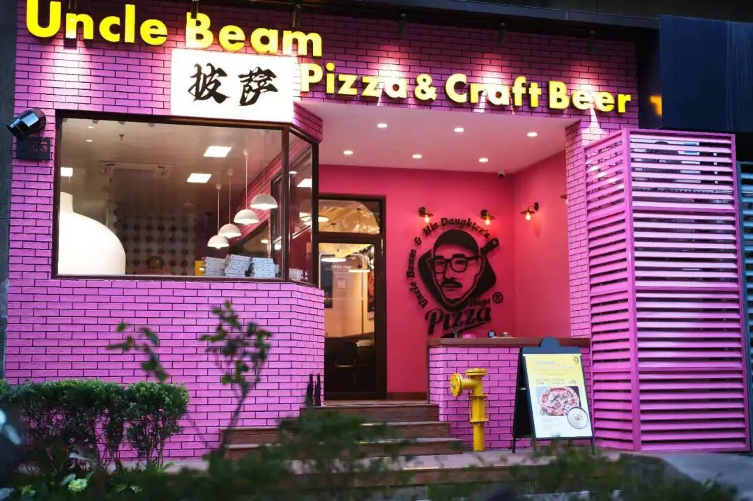 这里是“UncleBeamPizza&CraftBeer”韩国街店,大众点评“上海披萨榜单”第一名。招牌上的简笔头像,正是店主Beam。