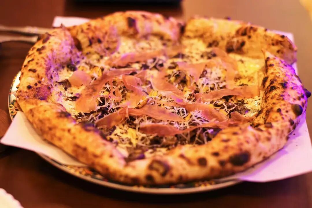 店里披萨价格在45元到80元之间。常客张先生点了一份黑松露牛肝菌拿坡里,他说:“看着制作过程挺有意思的,高温能激发出黑松露和火腿的香气,再加上牛肝菌特有的鲜味,很好吃。”