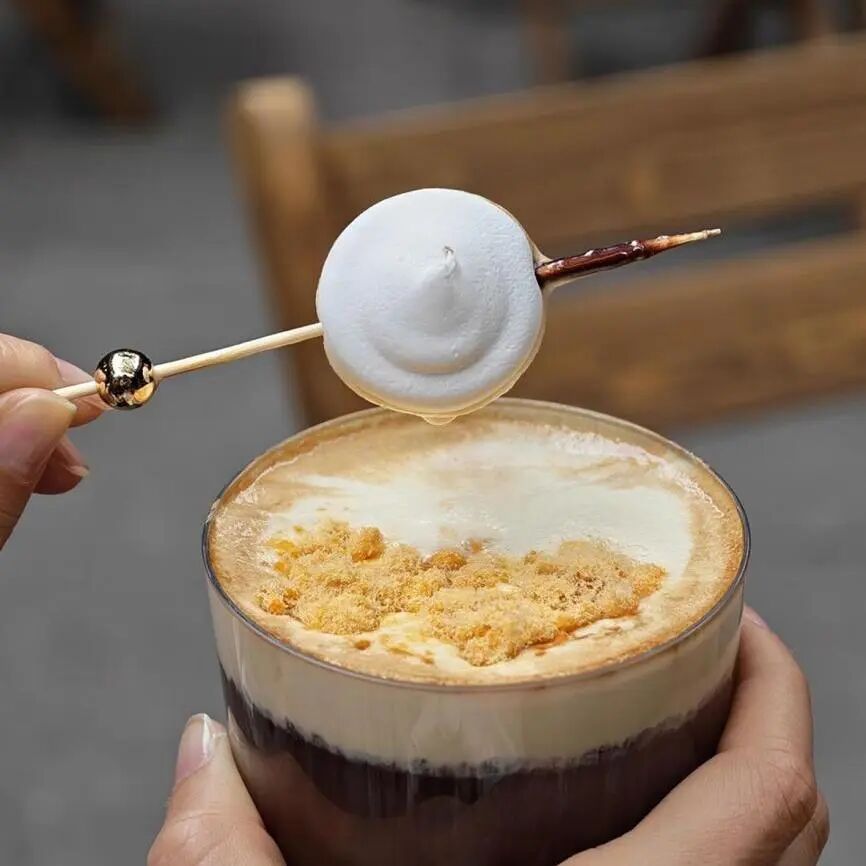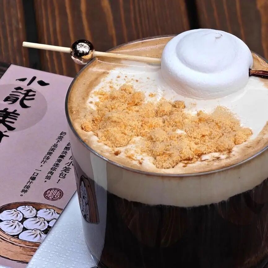 最具特色的便是「小笼美式」,顶端铺着肉松,缀以小笼造型的棉花糖,轻咬即“流汁”,咖啡的微苦与肉松的咸香交织,再搭配小笼的鲜香,打破传统与新潮的界限,每一口都充满惊喜。