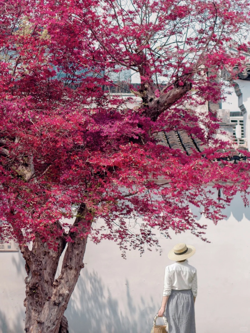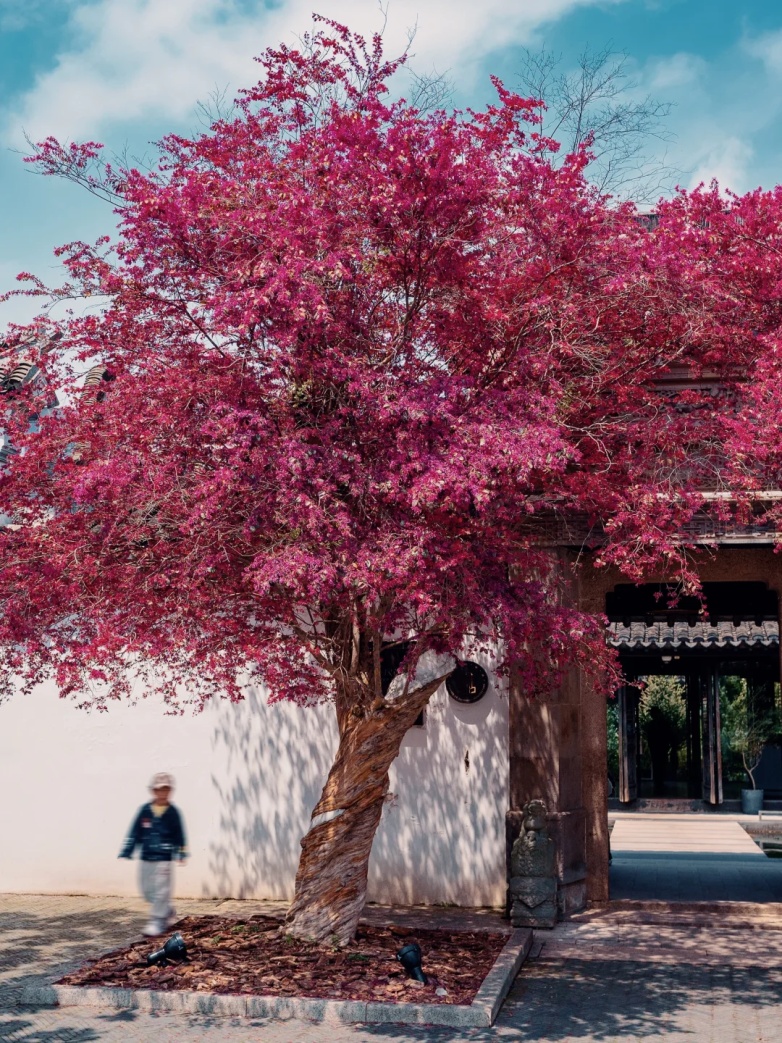 4月,会迎来红花檵木盛放期,绯色云霞蒸腾,搭配白墙黛瓦,中式美学令人叹为观止。