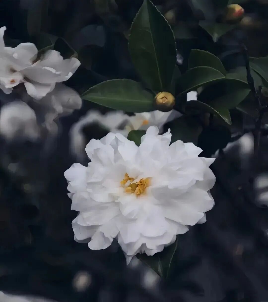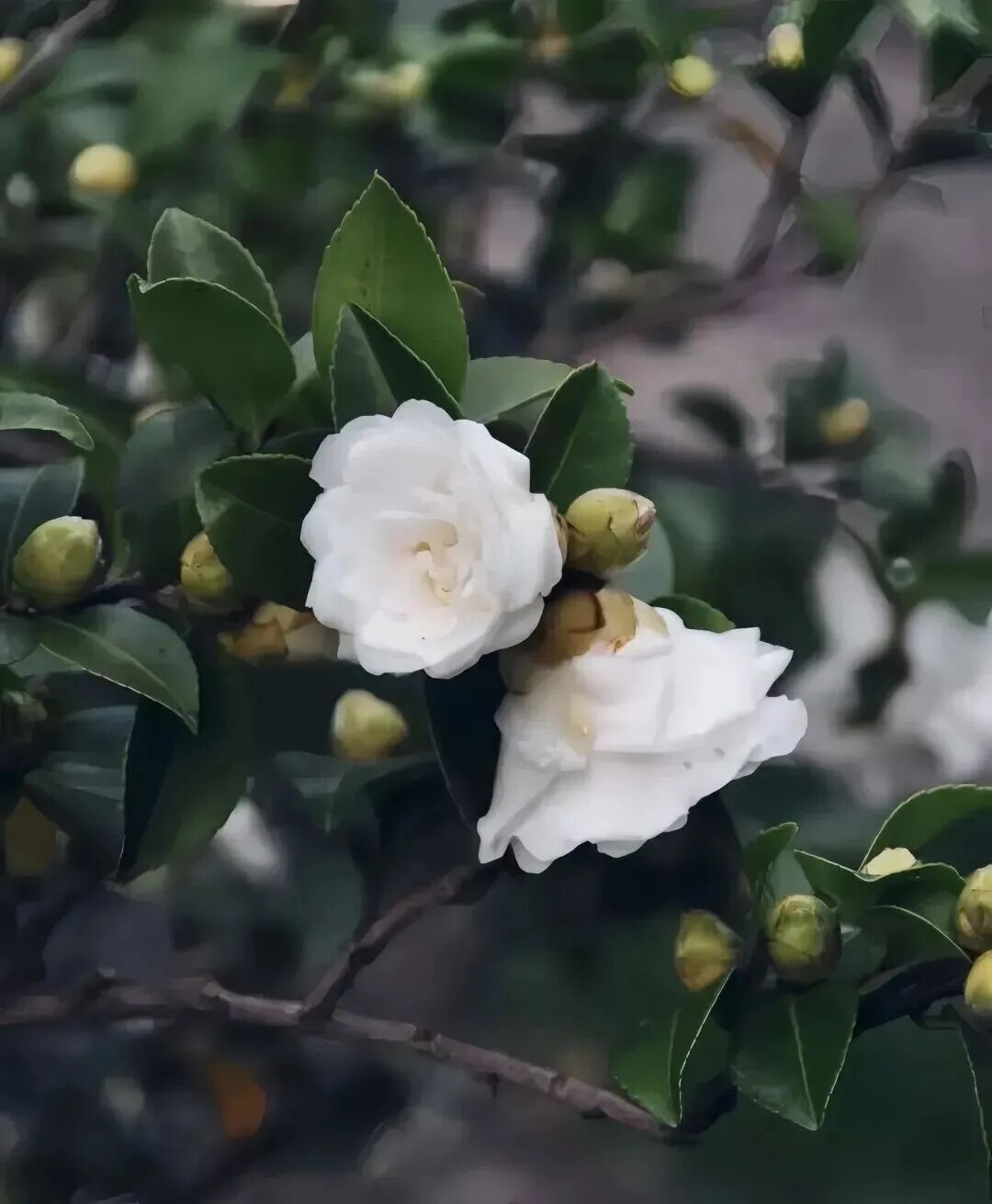 这株茶梅又名秋芍药、富士之峰,是珍贵的白色重瓣品种。豫园白墙青瓦间,这株古茶梅如约迈入盛花期,预计持续至正月底。