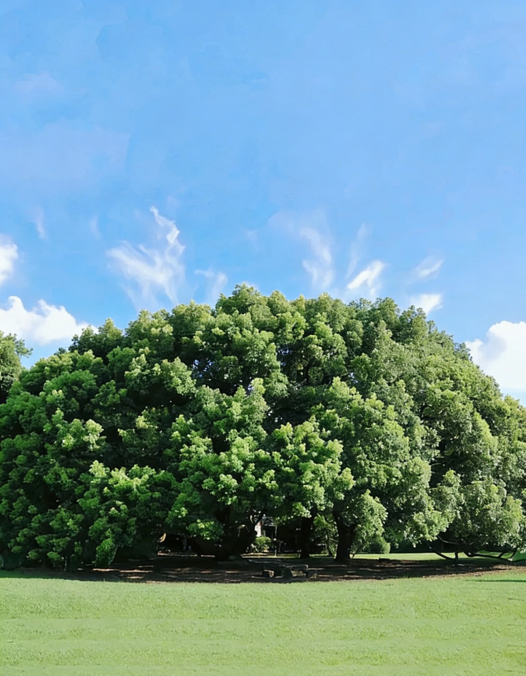 古香樟生长在兴国宾馆大草坪的一隅,与之相望的是一栋欧式二层楼的宫廷建筑,香樟浓郁的绿色配上建筑物纯洁的白色,映衬蓝天白云,这一场景无不让人遐想,使人静谧。