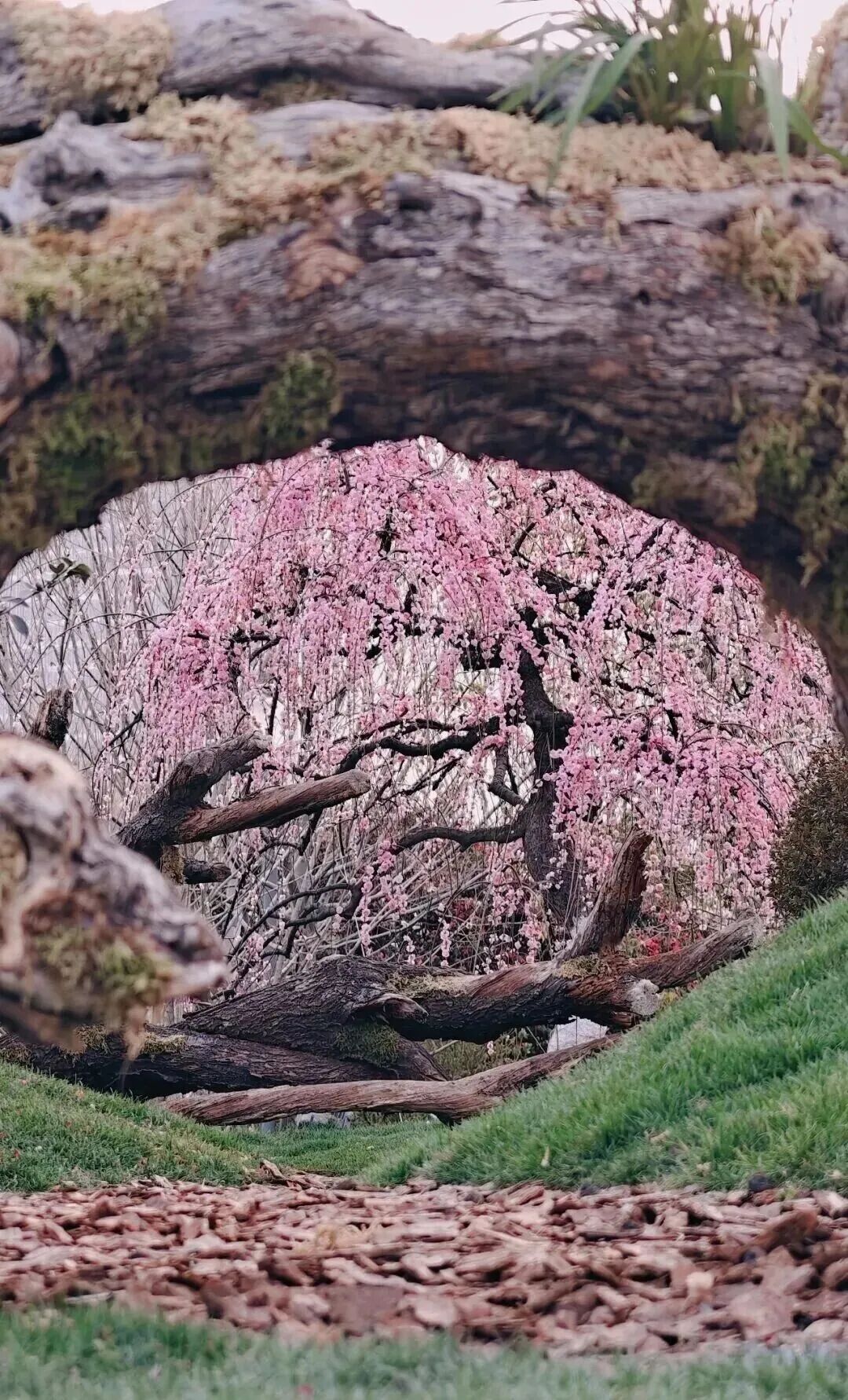 正在世博文化公园举办的奇花艺境展,首阶段以垂枝梅为主题,以其空前规模与独特形态,突破传统赏梅模式,运用中国园林造景手法,实现“一梅一景、移步换景”的意境。