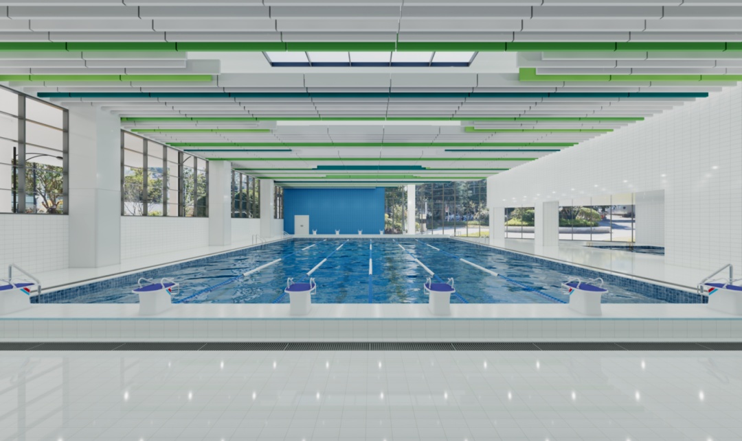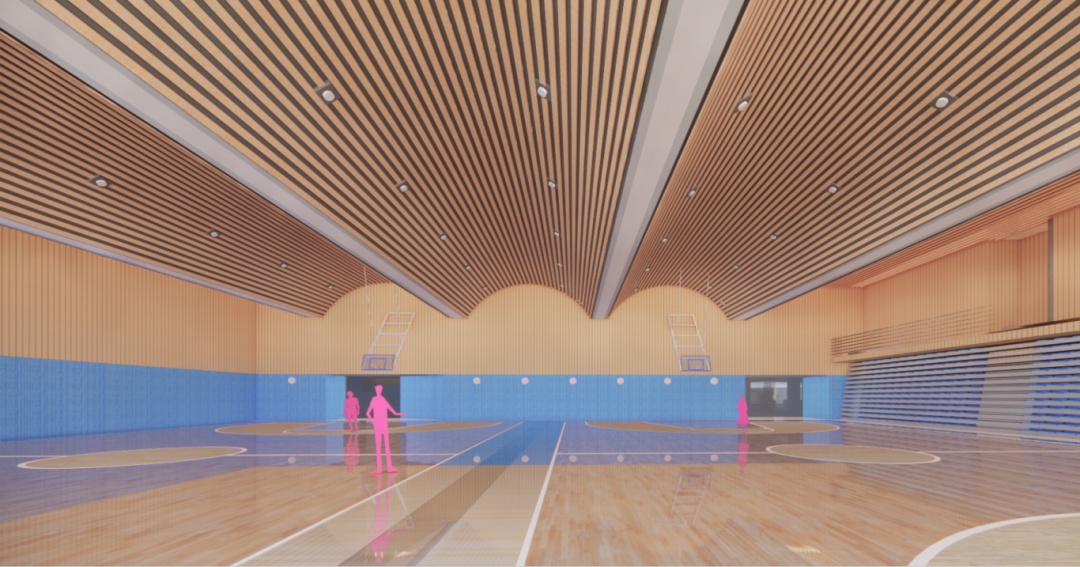 学校还有可容纳400名师生的校内宿舍、一个室内恒温游泳池、漂亮的楼顶操场等。