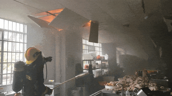 2024年4月9日,江西省丰城市一厨房着火,起火原因为蒸饭柜设备故障过热导致起火后,火势顺着油烟管道的油污蔓延所致。