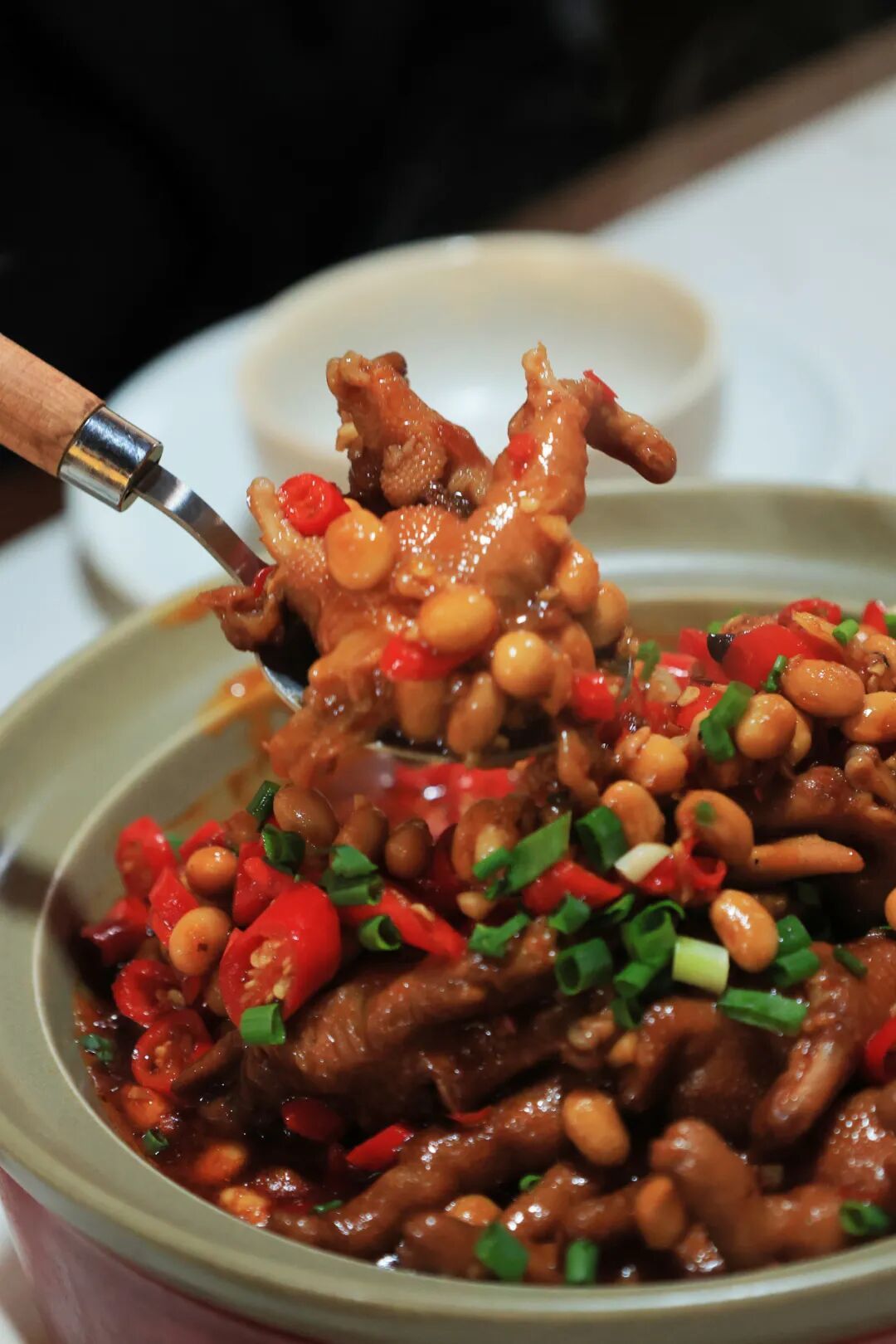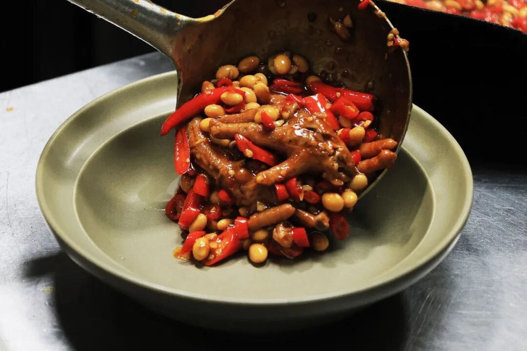作为招牌“销冠”,鸡爪经过长时间的文火焖煮,软糯到轻轻一抿即可脱骨。点睛之笔是吸饱了汤汁精华的黄豆,绵软沙糯,咸香中带着回甘。