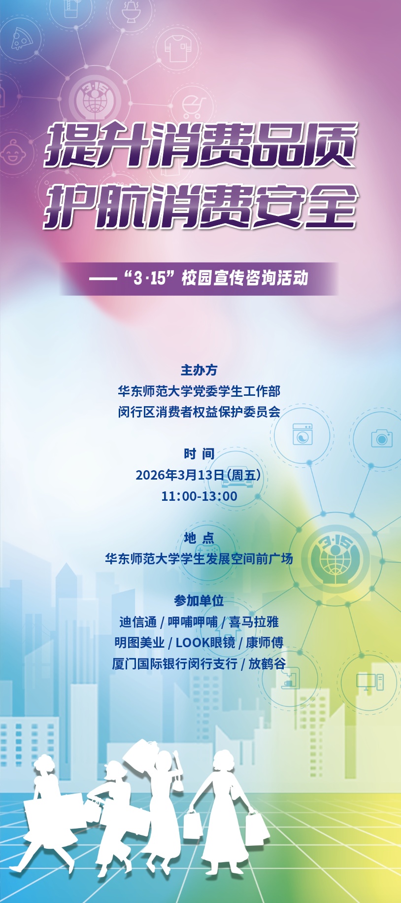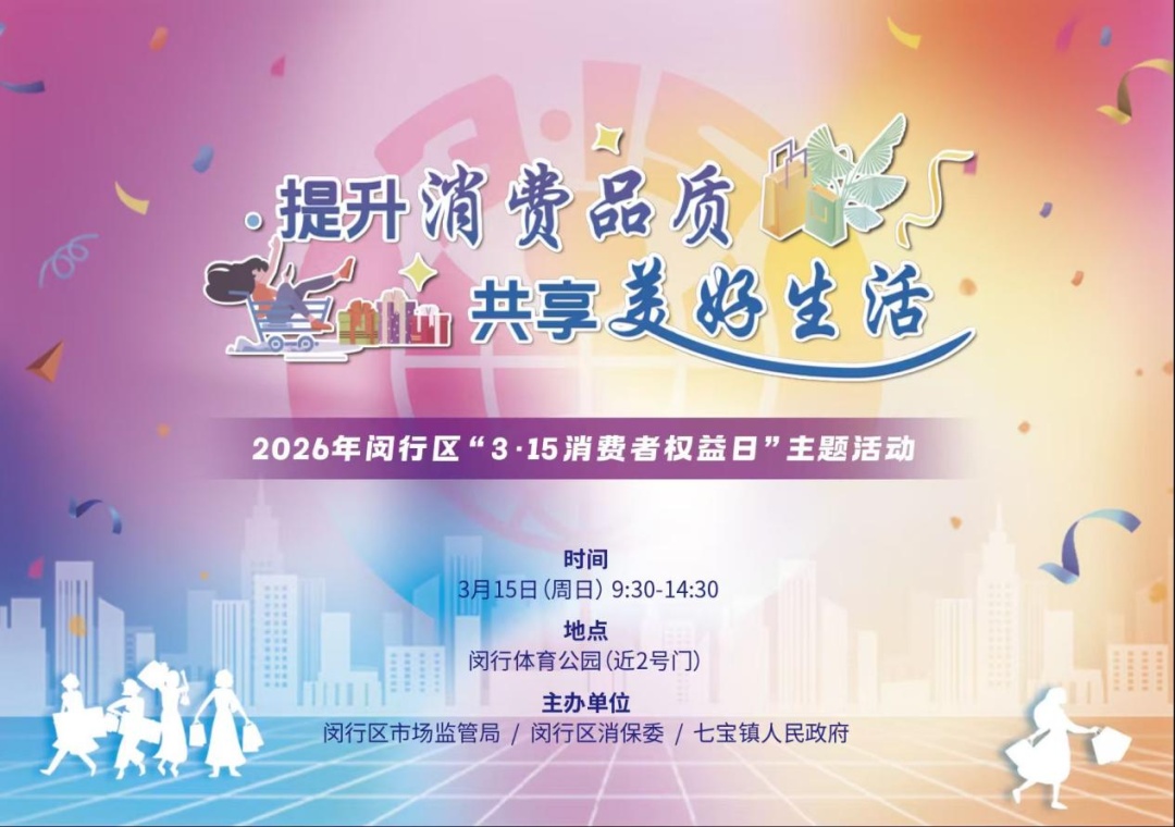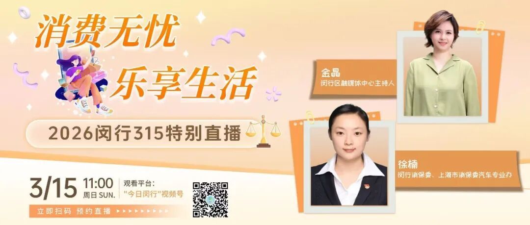 为保障广大消费者的合法权益,营造安全放心的消费环境,闵行区消保委联合闵行区融媒体中心,将于3月15日在“今日闵行”微信公众号平台,对3·15主题活动进行在线直播。